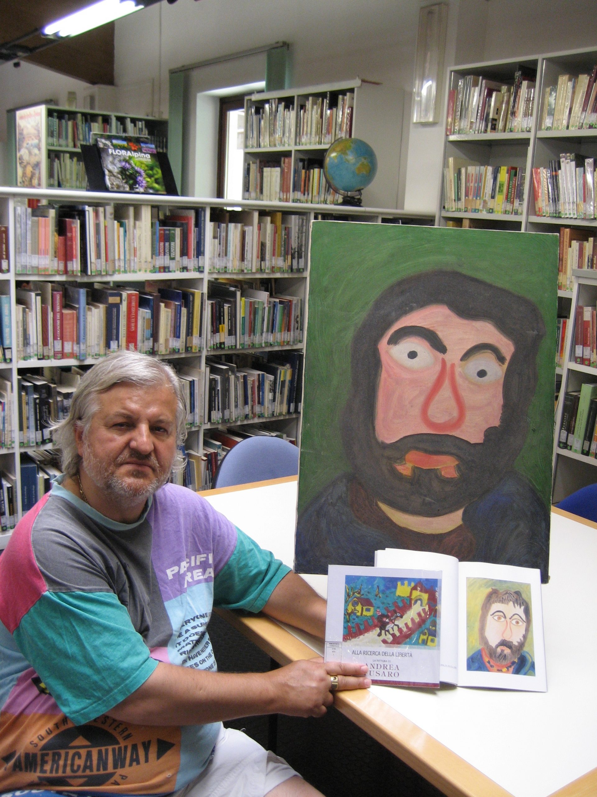 “Ecco, è per voi della biblioteca”. Il noto pittore naif Andrea Fusaro ha recentemente donato alla biblioteca “Luigi Dal Ri” di Mori uno dei suoi primi autoritratti, datato 1994 che ora fa bella mostra di sé, proprio a due passi dal tavolo preferito dall'artista.