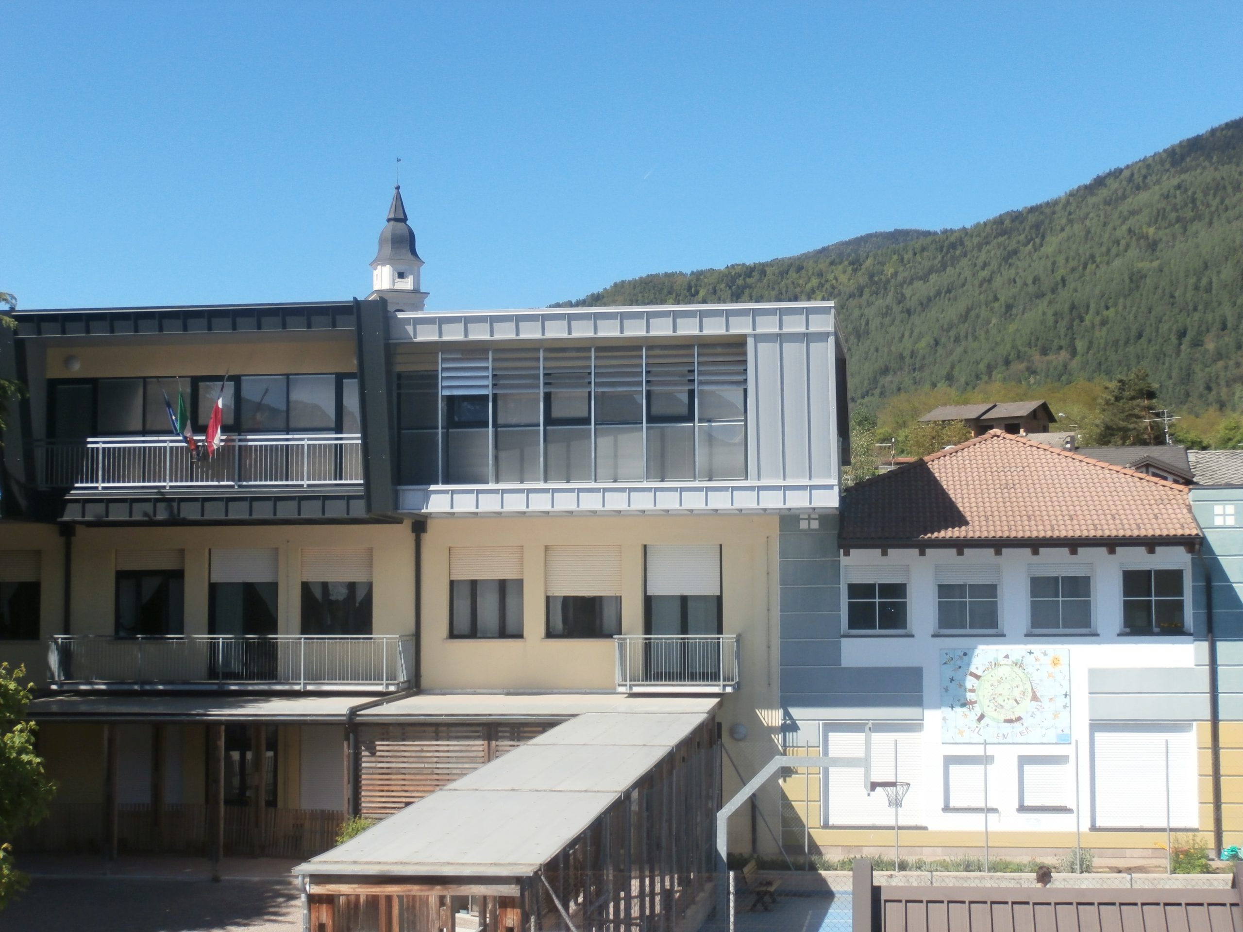 Sono stati migliorati gli spazi interni al primo piano ed aggiunti nuovi locali destinati alla didattica (laboratorio e aula informatica). La sopraelevazione è stata realizzata in legno, sia per esigenze statiche sia antisismiche, puntando su una elevata qualità ambientale. “Ma l’aspetto più importante è che si è voluto allacciare l’intero processo costruttivo all’area formativa, configurandolo come una vera opportunità per sperimentare la sostenibilità”, sottolinea il sindaco Antonio Valentini. Sono stati coinvolti il progettista ed il direttore lavori, il corpo insegnati ed esperti del GBC Italia per una esperienza educativa e formativa davvero unica nel suo genere. “I bambini della scuola primaria hanno toccato con mano le differenze tra una porzione di edificio realizzata con un’edilizia tradizionale e dei nuovi spazi studiati in un’ottica sostenibile”. Una progetto davvero interessante che ha coinvolto l’intero corpo insegnante della scuola. “Le maestre sono quelle che fanno la vera differenza, facendo vivere ai nostri bambini momenti unici a contattato con la natura che avvolge il nostro bel colle e la nostra scuola”, prosegue il sindaco.