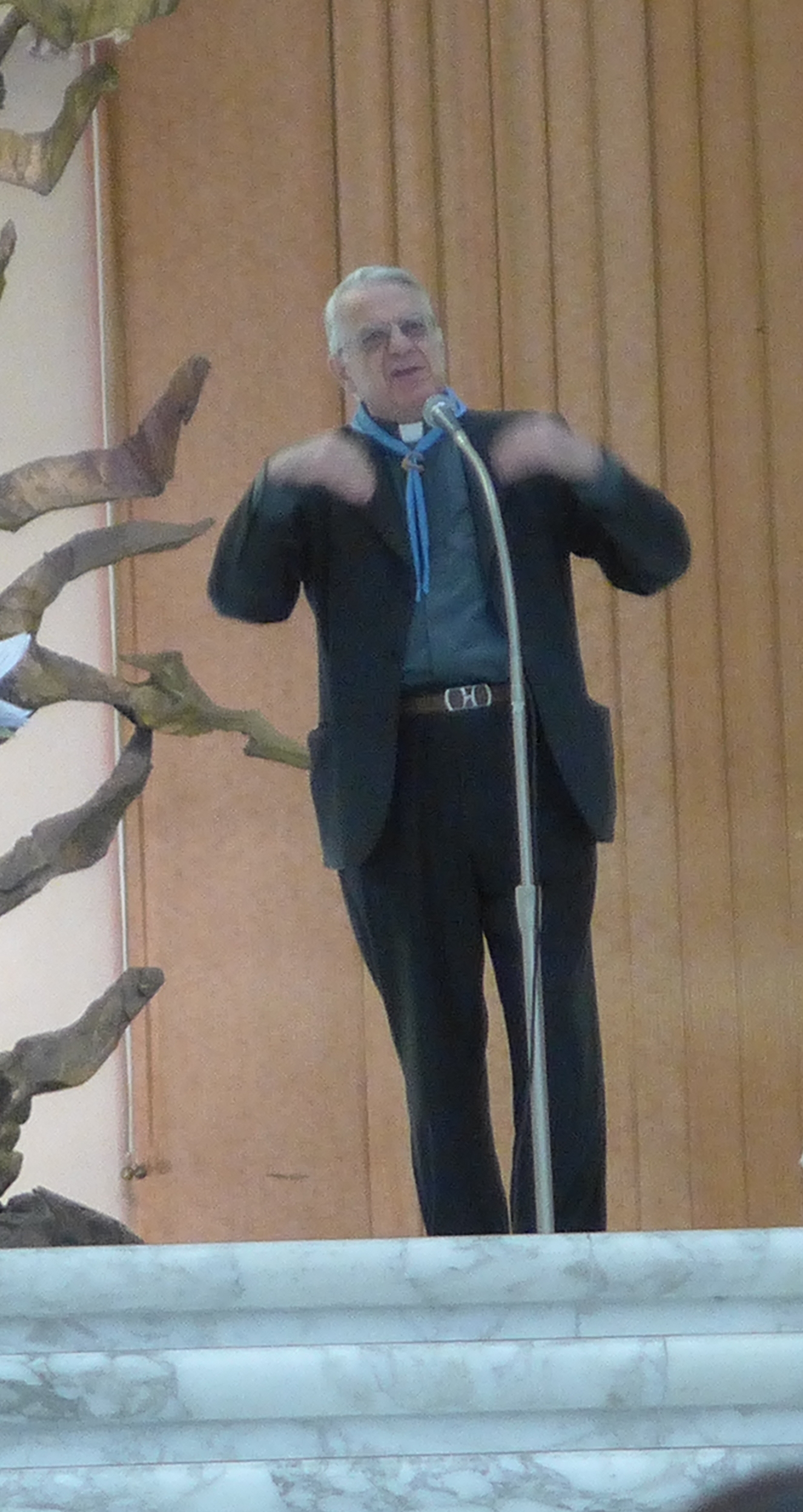 Quest'anno ha festeggiato 60 anni esatti dalla sua “promessa” scout: il gesuita padre Federico Lombardi, portavoce vaticano dal 2006, per ben 15 anni assistente del Masci, è stato lo sponsor di quest'udienza inedita. Visibilmente commosso, ha intrattenuto i 7 mila sottolineando come il vocabolario di Papa Bergoglio contenga molte espressioni tipiche dello scautismo: “La prima parola è uscita – ha detto – ma lasciare il posto sicuro per l'avventura è proprio delle uscite fin dal branco o dal reparto”. Anche Giovanni Paolo II in un'udienza agli scout aveva invitato a “prendere il largo”, ma questo Papa ci chiede una “Chiesa in uscita, non autoreferenziale, protesa alla missione”.