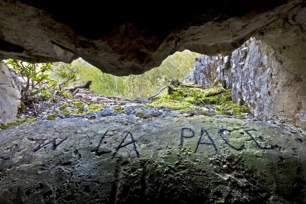 “In alcune caverne e feritoie ho trovato varie scritte”, conclude Andrea Contrini. “Alcune riportavano informazioni sulle divisioni militari, altre erano frasi patriottiche, altre ancora ricordavano un nome e una data”. Tra questi ricordi scalfiti sulla roccia, Andrea ha trovato l’ennesimo contrasto che lui stesso ha cercato di sottolineare, legando la guerra all’armonia di questi paesaggi. Una frase, scritta da un soldato, magari di fretta, in una feritoia su cima Mezzana a passo Buole. Tre parole: “Viva la pace”. Chissà chi era quell’uomo, ma senza saperlo, scrivendo questa frase mentre fuori rimbombava il fuoco nemico, ha ridato speranza a tutta l’umanità. Di ieri e di oggi.