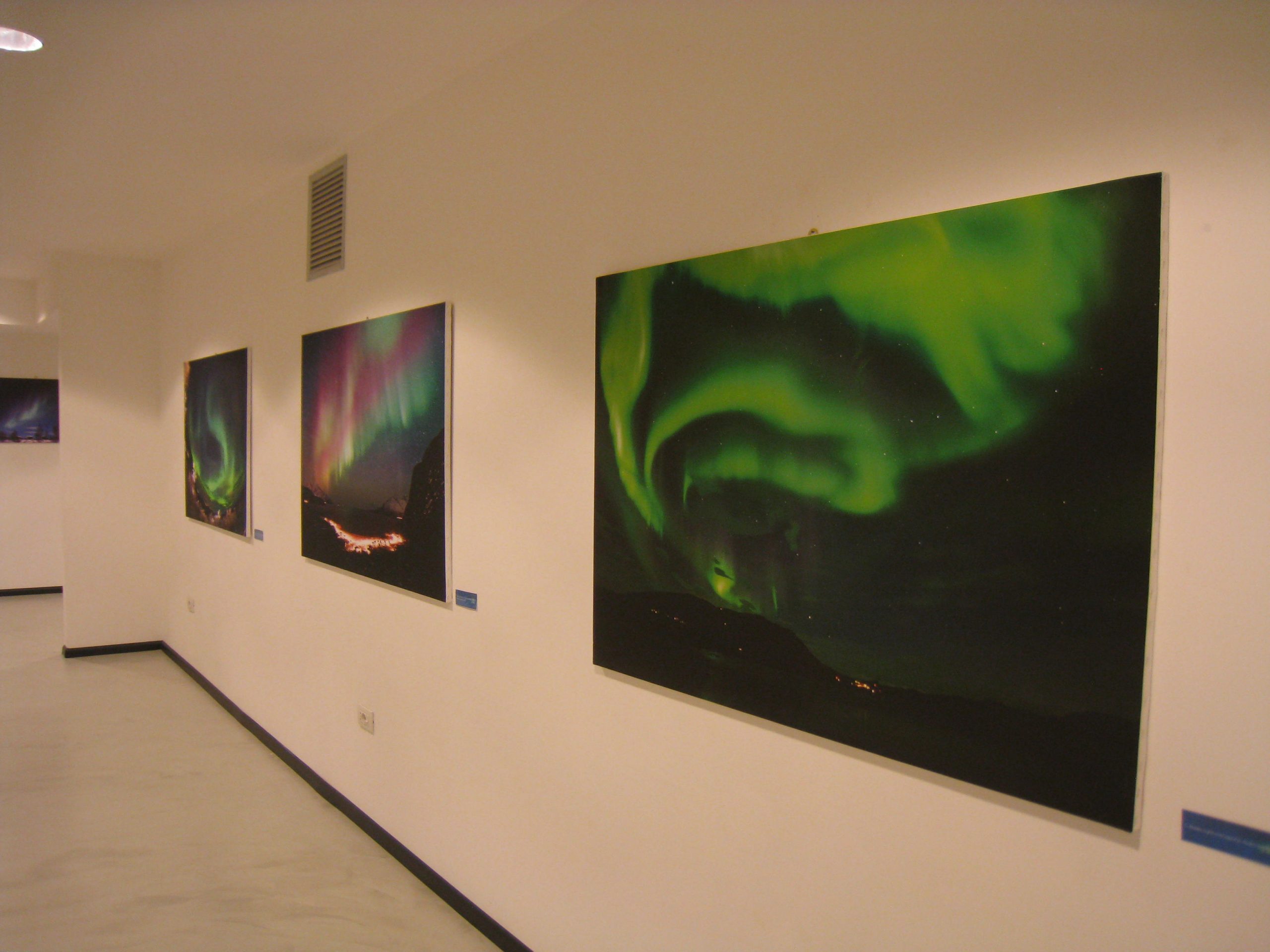 Sono esposte diverse immagini fotografiche di aurore, riprese nei paesi nordici negli inverni 2012-2013. I due ovali aurorali hanno forma piuttosto irregolare ed è come se fossero agganciati al nostro pianeta su un perno piantato nei poli geomagnetici. Le aurore, visibili di notte, sono provocate dall'attività solare. Sono sempre presenti nell'ovale, ma diventano più intense in presenza di una tempesta geomagnetica. Allora l'anello ovoidale, che in periodo di quiete ha un diametro di circa 5 mila chilometri, si espande notevolmente. L'ovale tutto intero è ben visibile solo dallo spazio.