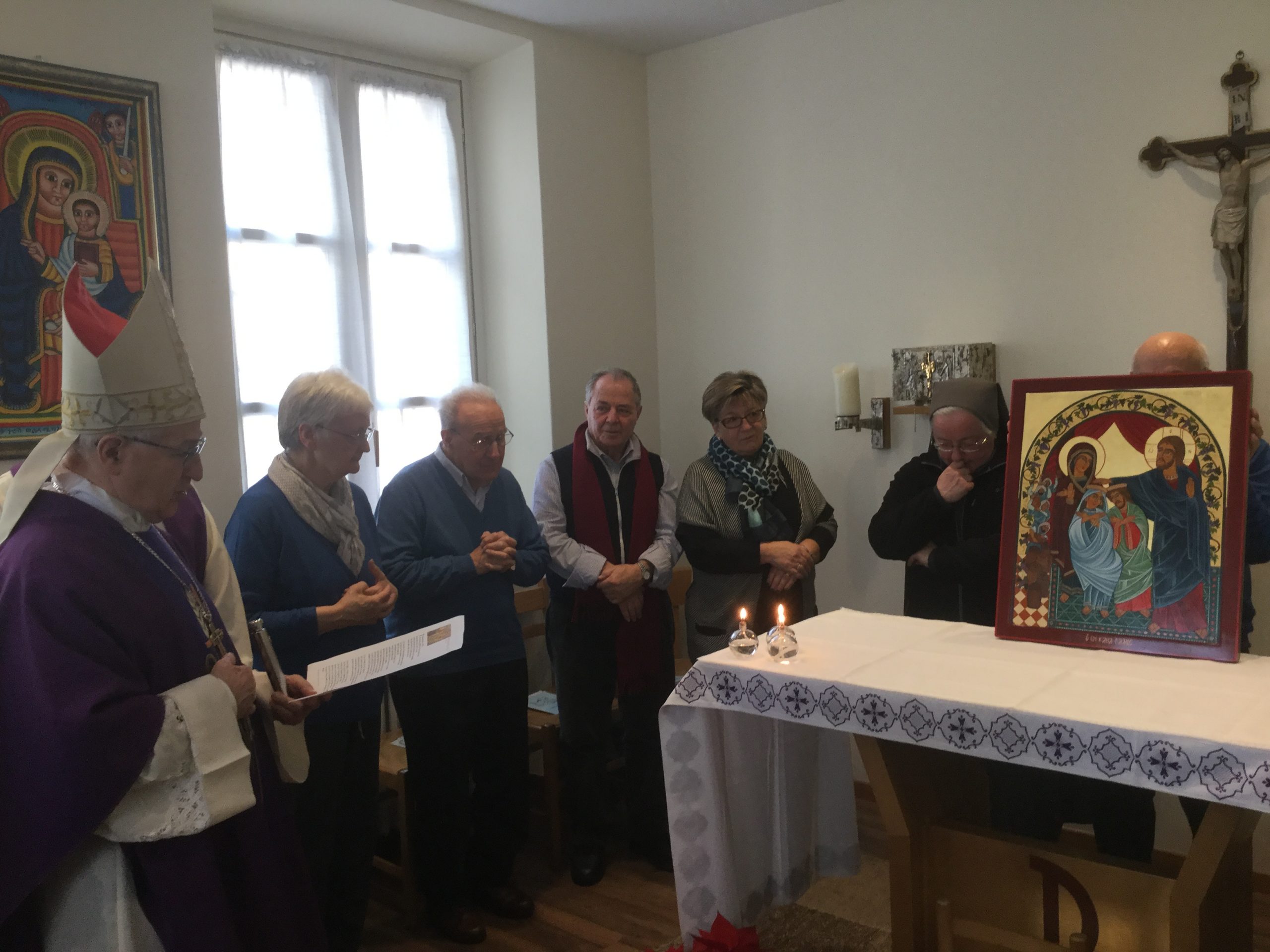 E' stata benedetta dall'amministratore apostolico Luigi Bressan e dal delegato don Albino Dell'Eva giovedì scorso alla presenza delle due religiose dell'eremo di Caulonia, suor Rossana Leone e suor Renata Bozzetto: “Vi ringraziamo – ha detto Bressan – perchè continuiamo a vedere in questo in questo dono un simbolo del legame che ha unito il Trentino alla Locride ai tempi di mons. Bregantini e che ancora prosegue”. Le due suore iconografe hanno illustrato nel dettaglio i messaggi teologici e biblici contenuti nell'icona che rappresenta ogni cristiano nella figura dei servitori che portano i contenitori d'acqua “cambiata” in vino a Cana.