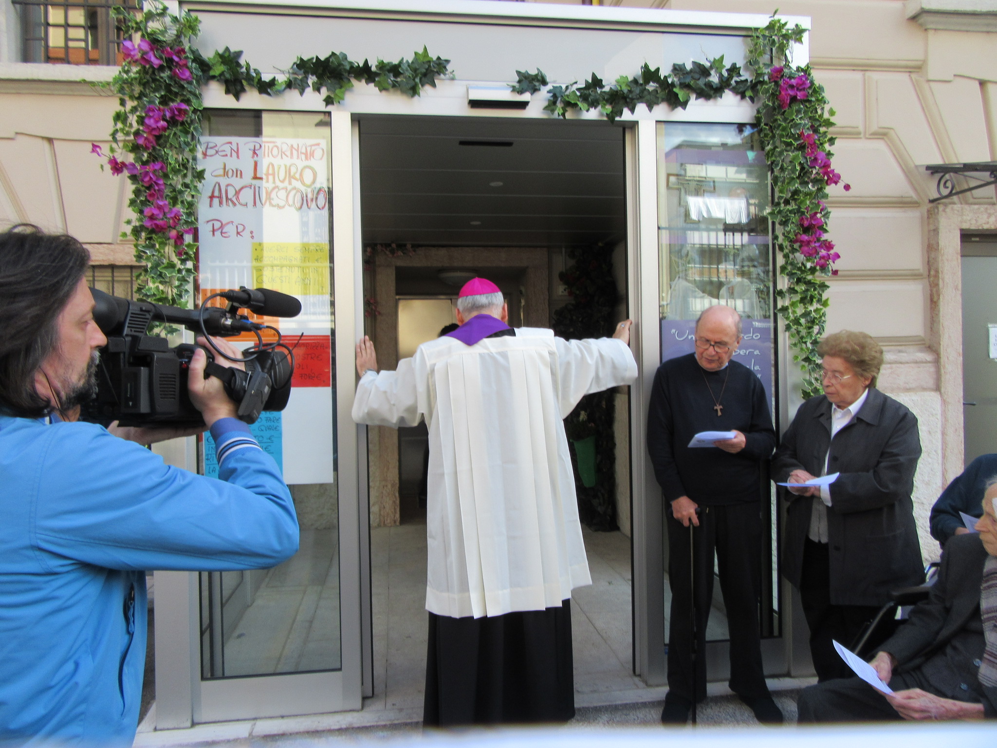 Un rito semplice e significativo, esemplare di questo Anno Santo della Misericordia, nel pomeriggio di giovedì 16 aprile: in Seminario all'ingresso della Casa del Clero che ospita 37 anzini preti trentini l'Arcivescovo Tisi ha aperto la Porta Santa. Nell'Eucaristia partecipata anche da operatori e familiari, assieme all'assistente don Olivo Rocchetti e a don Alberto Carotta, mons. Tisi ha sottolineato come in questo luogo l'incontro con l'esperienza di Cristo nella malattia possa diventare occasione di apertura alla misericordia di Dio e al prossimo: di qui l'invito della comunità a frequentare quest'ambiente di carità, “varcando anche questa Porta Santa”.