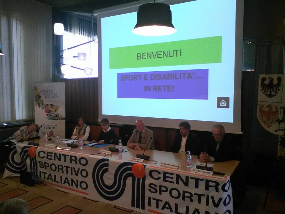 Nel corso del convegno – rivolto a educatori, fisioterapisti, istruttori, dirigenti, allenatori e insegnanti – sono stati esaminati i punti salienti del progetto. “Soprattutto per le persone disabili, il concetto di sport e attività motoria è molto importante. Le disabilità sono di tre tipi: mentali per il 70 per cento, fisiche per il 20 e sensoriali per il 10. La rete è il modo per collegare un territorio molto variegato come quello trentino, morfologicamente sfortunato”, ha sottolineato Massimo Bernardoni, responsabile del settore paralimpico della Federazione Italiana Sport del Ghiaccio. “Bisogna lavorare per comunicare a tutte le persone. Fare rete, ossia fare squadra, senza gelosie o protagonismi. Aiutarle ad approcciarsi a nuove discipline, facendogliele provare gratuitamente. Non dimentichiamo che un euro speso nello sport ci fa risparmiare tre euro nella sanità. Utilissima, al riguardo, è la nuova legge provinciale, che stabilisce fondi e risorse che prima non c'erano. Le difficoltà, ovviamente, non mancano: se quello degli impianti è un problema risolvibile, quello della professionalità è un tema assai più delicato. Inoltre ci sono sport per i quali i Comitati di Trento e Bolzano dovrebbero unirsi, visto che nello sledge hockey, ad esempio, cinque ragazzi trentini giocano nel Gruppo Sportivo Disabili Alto Adige”.