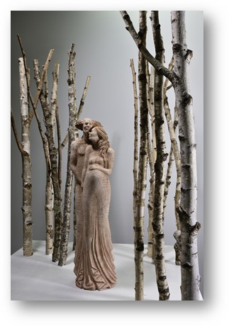 Recuperando l’antico significato del termine latino “Adventum”, la venuta del Figlio di Dio come culmine e compimento di un percorso, Bruno Lucchi ha progettato un ideale tracciato di “pietre” simboliche, lungo cui sono disposti i gruppi scultorei di grande formato, essenziali ed eleganti, a scandire la successione temporale degli avvenimenti: l’Annunciazione, il viaggio verso Betlemme, il bambino.