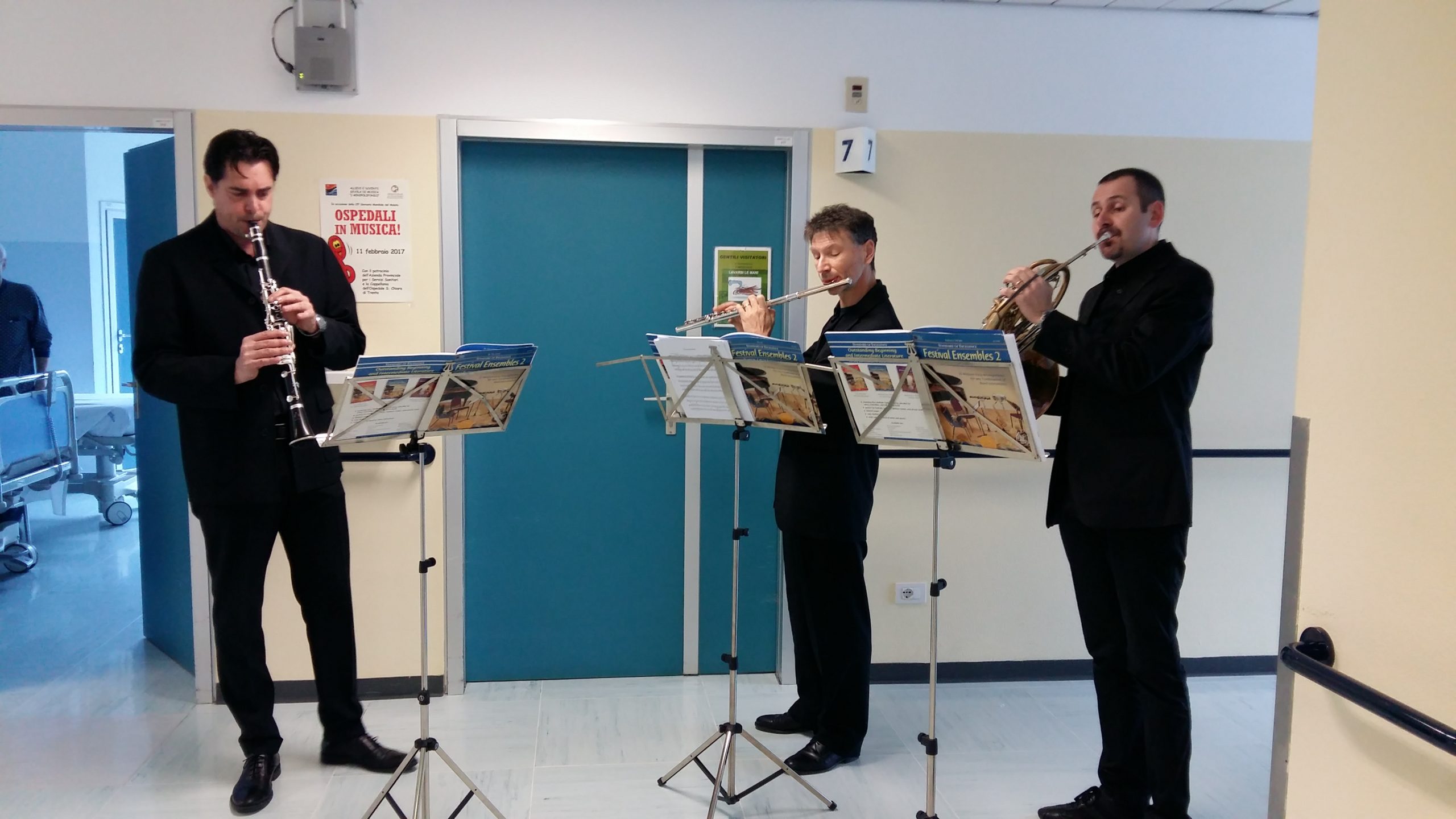 Al Santa Chiara di Trento si sono alternati nella melodia, tra un piano e l'altro dell'ospedale, docenti e allievi della scuola “I minipolifonici”. L'apertura, al reparto oncologico, è stata affidata a tre insegnanti (Stefano al corno, Nicola al flauto e Michele al clarinetto), di fronte ad un pubblico molto partecipe che ha richiesto numerosi bis. Dal reparto di Medicina la loro musica è arrivata da lontano fino alla stanza di un paziente, che non potendo alzarsi dal letto ha richiesto al trio una suonata in camera sua. Nel pomeriggio il violoncello di Ester, allieva, ha allietato la Nefrologia e Ostetricia. Nel reparto di Ortopedia è toccato a un trio di allievi clarinettisti, Giacomo, Nicola e Vittoria, che hanno poi concluso la giornata con alcuni brani eseguiti nell'atrio principale all'entrata dell'ospedale. I pazienti hanno molto apprezzato la compagnia di note e melodia offerta dai Minipolifonici, tanto che qualcuno ha suggerito di riproporre l'iniziativa più volte durante l'anno.