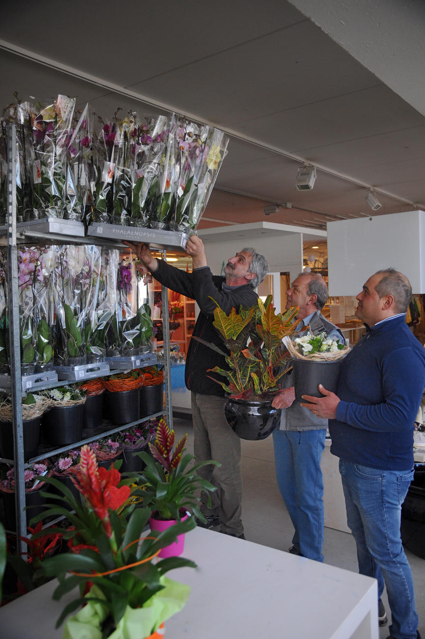 Sono più di una quindicina i dipendenti, ben motivati, che rendono accattivante l'accostamento fiori, frutta e buona tavola. La strategia di vendita porta a promuovere ogni 15 giorni ben quattro o cinque prodotti con forte scontistica: “La gente giustamente vuole assaggiare, vuole toccare con mano. Non ci sono solo le vendite online”, dice Ferrari, il cui entusiasmo è condiviso dal collaboratore Luca Forti, un amico approdato qui dall'autunno delle liste di mobilità. Dopo 38 anni di lavoro presso un'azienda automobilistica trentina si è trovato ai ox per via della crisi dell'auto: ha continuato però a coltivare la passione dell'orto di casa ed ora è stato assunto da Ferrari buttandosi anima e corpo in questa nuova avventura aziendale. Dai motori ai colori? “Sono proprio contento. Dopo un anno senza lavoro, in mobiliyà, qui ho finalmente scoperto la possibilità di lavorare in un settore che mi entusiasma. E spesso vedo arrivare miei ex clienti, che vengono volentieri a trovarmi…”.