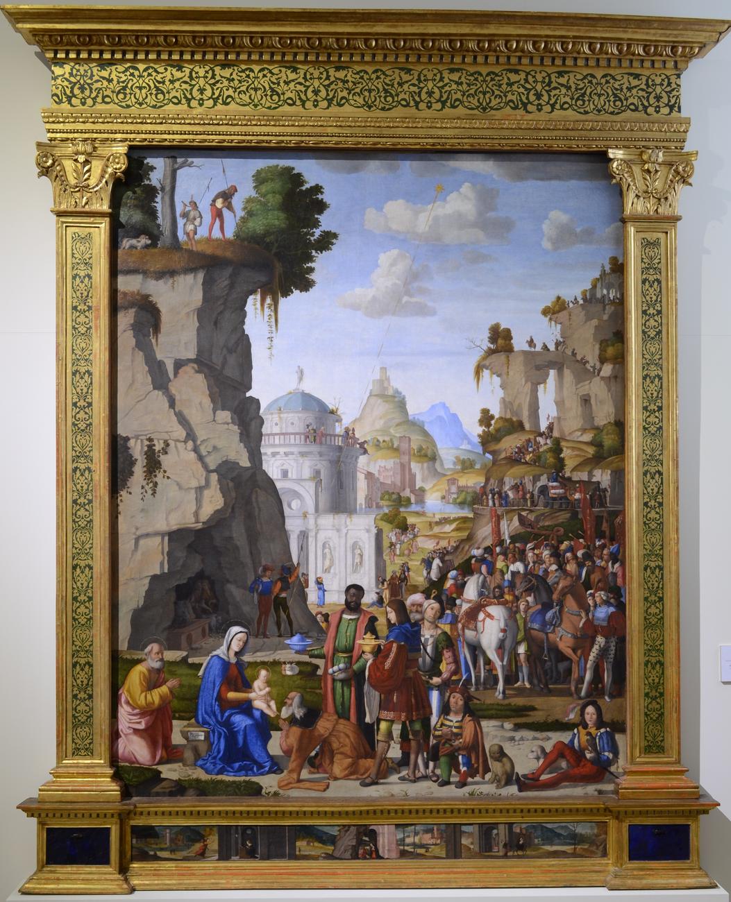 Ancor più esplicita la sua visione tra il pagano e il rispetto devozionale si scorge nella pala dell’adorazione dei Magi in cui, pur soffermandosi sul mistico omaggio degli astrologi orientali, dà l’avvio nel lungo corteo alla sua visione festaiola della vita. Per questa sua spiccata esuberanza esistenziale questo pittore è capace di estrarre dalle figure sacre le effusioni più emotive e di profonda umanità come nel monumentale gruppo della Madonna in trono: la madre di Dio rompe la sua statuarietà avvicinandosi al suo Bambino con radioso atteggiamento materno. Ricrea con tocchi personali e raffaelleschi, colmi di lirismo amoroso, il volto della Vergine Maria nell’icona della “Vocazione di San Pietro e Paolo”.