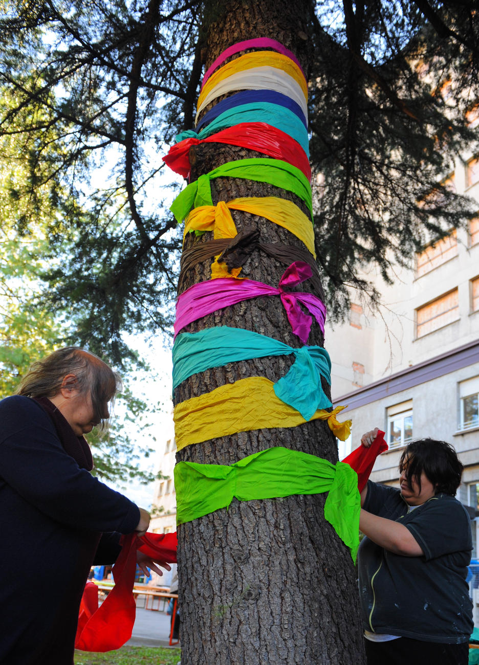 Divisi in piccoli gruppi, ognuno si è preso cura di un angolo del giardino, usando in gran parte materiali di recupero, molti dei quali portati dagli stessi artisti, veri o aspiranti, convenuti alla festa. Ognuno ha messo a disposizione qualcosa, oltre alla sua personale creatività: “È stata veramente una festa del fareassieme – conclude l'operatrice Brollo – e, a fine giornata, è stato molto piacevole veder entrare nel nostro giardino una nonna con i due nipotini, che erano stati attratti dai colori”. L'attacco d'arte è durato solo un giorno, ma l'ispirazione troverà certo altre modalità di espressione, per trasformare quel luogo e le persone che lo abitano in qualcosa di sempre più “fantastico”.