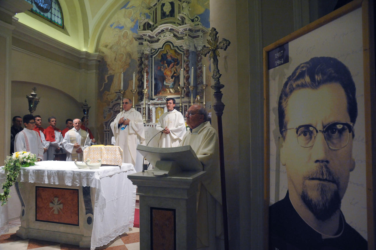 Agrone, la frazione di Pieve di Bono nella valle del Chiese, era noto finora come “il paese delle due curve”. Sabato scorso all'oratorio si scherzava dicendo che non lo sarà ancora a lungo perchè un viadotto sta rettificando la statale. Ma forse diventerà sempre di più il paese del missionario martire padre Remo Armani, ucciso il 24 novembre 1964 in Congo. Secondo il racconto tramandato di famiglia in famiglia, i guerriglieri Simba dopo averlo ucciso avrebbero poi gettato il suo corpo nel fiume, “divorato dai coccodrilli”. Da allora il suo volto barbuto guarda severo i fedeli dabanti alla chiesa parrocchiale da una lapide marmorea che ha sempre incuriosito anche un altro figlio di Agrone, don Daniele Armani, pronipote del missionario.