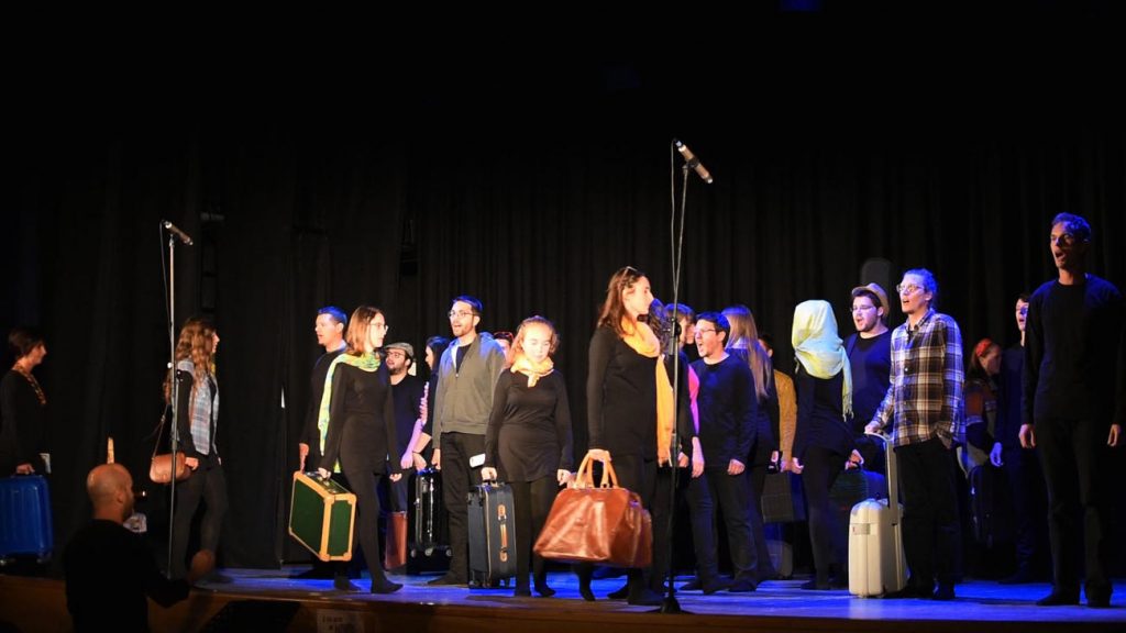 Lo spettacolo “Il mio posto nel mondo” vede l’attore Leveghi ripercorre un viaggio a ritroso nel tempo. Era partito mosso da domande pressanti, importanti, scomode: cosa ci faccio qui? Che senso ha il mio esistere? Qual è la mia ragione di vita? “Nel corso del suo viaggio attraverso il mondo – spiega ancora Chiara – incontra persone, conosce culture, scopre delle storie, che lo portano a comprendere di più se stesso e i possibili motivi per cui esistere. In tutto questo, il coro interviene proponendo canti provenienti da diverse parti del mondo, facendo da sfondo attivo e partecipe all’intero racconto e in alcuni casi anche recitando delle piccole parti”.