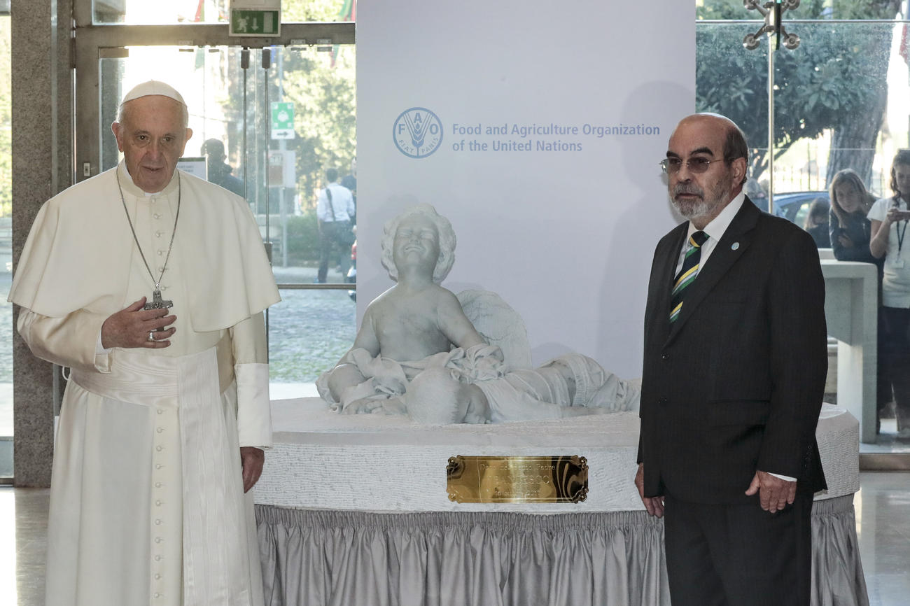 Donata alla Fao dal Papa, la scultura raffigura il piccolo Aylan, il rifugiato morto sulla spiaggia di Bodrum, in Turchia nell'ottobre 2015, che con tutta la sua drammaticità racconta la grave crisi