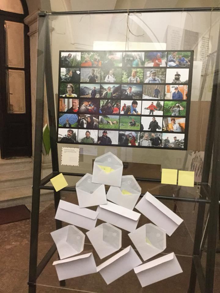 "Camminiamo in salita, lo zaino pesa, sono lenta eppure lo spazio è infinito. Lo sguardo va oltre e si perde, è una sensazione di infinito e pienezza, non ci sono limiti né confini": pensieri, riflessioni, poesie dei partecipanti alle escursioni accompagnano le fotografie esposte, narranti persone, senza alcun segno distintivo tra accompagnatore, volontario e utente, a fare da contraltare all'album comparativo, composto dalle fotografie scattate al paziente al momento di ingresso e di uscita dal manicomio, corrispondenti all'immagine della malattia mentale e a quella della salute. "Dopo le uscite in montagna – ha raccontato Gagliazzo – ci ritroviamo a guardare le fotografie scattate: formano un "diario visivo pensato", e alla fine dell'anno sono trasformate in cartoline da spedire a se stessi, parenti e amici". In questo modo il malato non è più visto come colui che genera fatica con il suo disagio, ma una persona che condivide il ricordo di una bella esperienza.