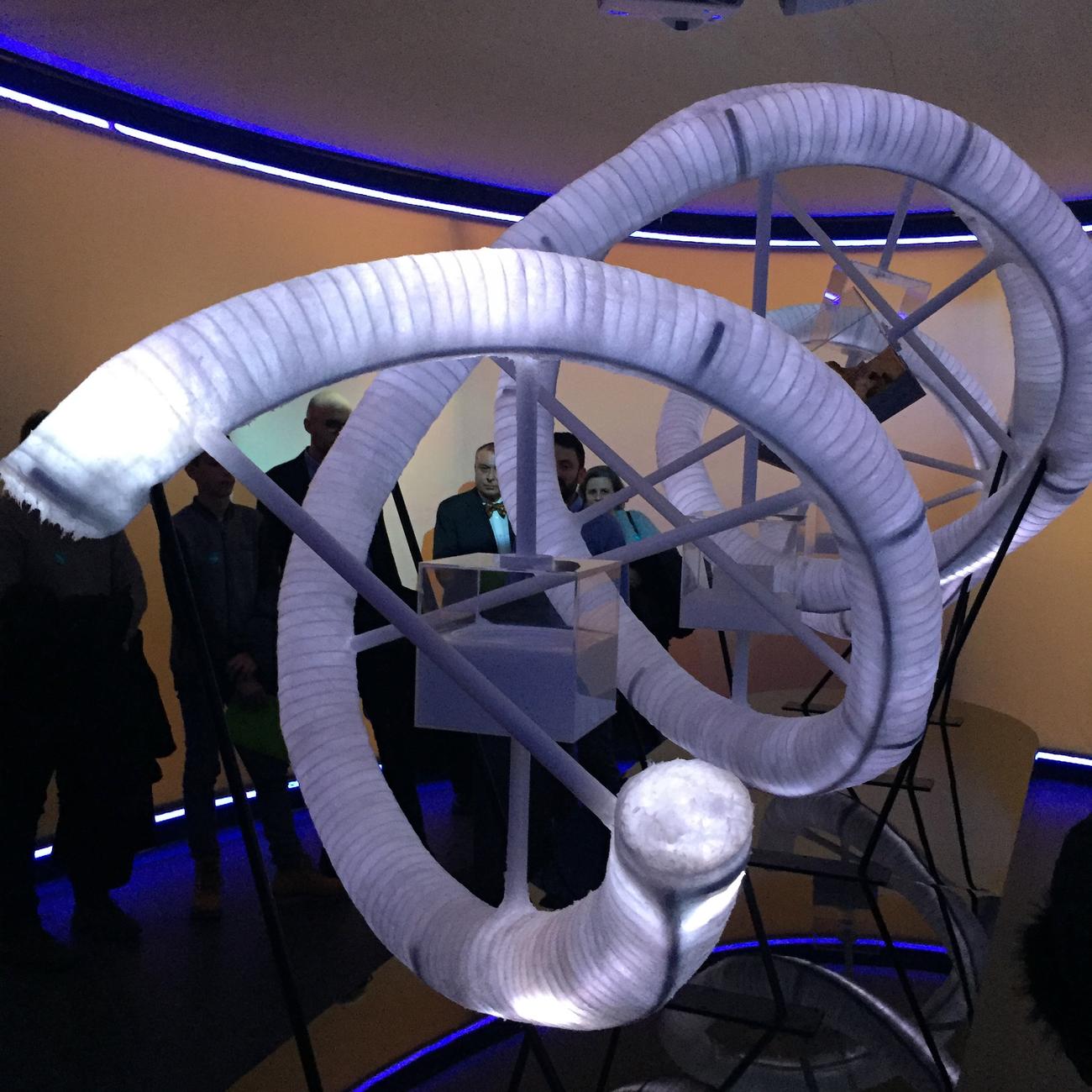 Particolarmente evocativa appare l’opera d’arte “DNA Epigenic”, che il visitatore incontra al termine del percorso espositivo. “L’opera nasce da un lungo confronto con il professor Giuseppe Macino, un luminare dell’epigenetica”, spiega l’autrice Claud Hesse. “E’ una scultura interattiva che non basta a se stessa, ma va attivata dal visitatore, che si fa vero e proprio deus ex machina della scultura stessa attraverso un maxi tablet”.
