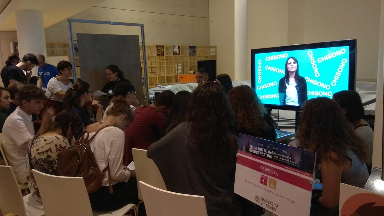 Alla Notte dei Ricercatori 2018, presso il Muse di Trento, ha destato attenzione, tra gli altri, lo stand del Dipartimento di Lettere dell’Università di Trento, gestito da cinque studenti e coordinato dalla docente di Storia della Lingua Italiana, Serenella Baggio. Il gruppo ha proposto, con qualche adattamento del caso, l’inchiesta sociolinguistica “Chisono”, già presentata qualche mesa fa in occasione di Trento Smart City. L’oggetto della ricerca “Chisono” è la lingua italiana di oggi, fotografata in una comunità di lavoro e di interscambio comunicativo come il Dipartimento di Lettere, dove sono presenti italiani e stranieri, componenti sociali differenti (studenti, docenti e amministrativi) e tra gli italiani prevalgono le provenienze da fuori regione. L’inchiesta ha prodotto un campione di ricerca costituito da 97 interviste video condotte in laboratorio con l’assistenza di un tecnico. Gli intervistati fanno sentire il loro accento tradendo, spesso, la loro provenienza geografica. Alla Notte dei Ricercatori spezzoni delle interviste sono stati proiettati su uno schermo e agli spettatori è stato chiesto di indovinare la provenienza degli intervistati. I questionari compilati – più di duecento – costituiscono il fulcro della ricerca della componente studenti nel progetto.