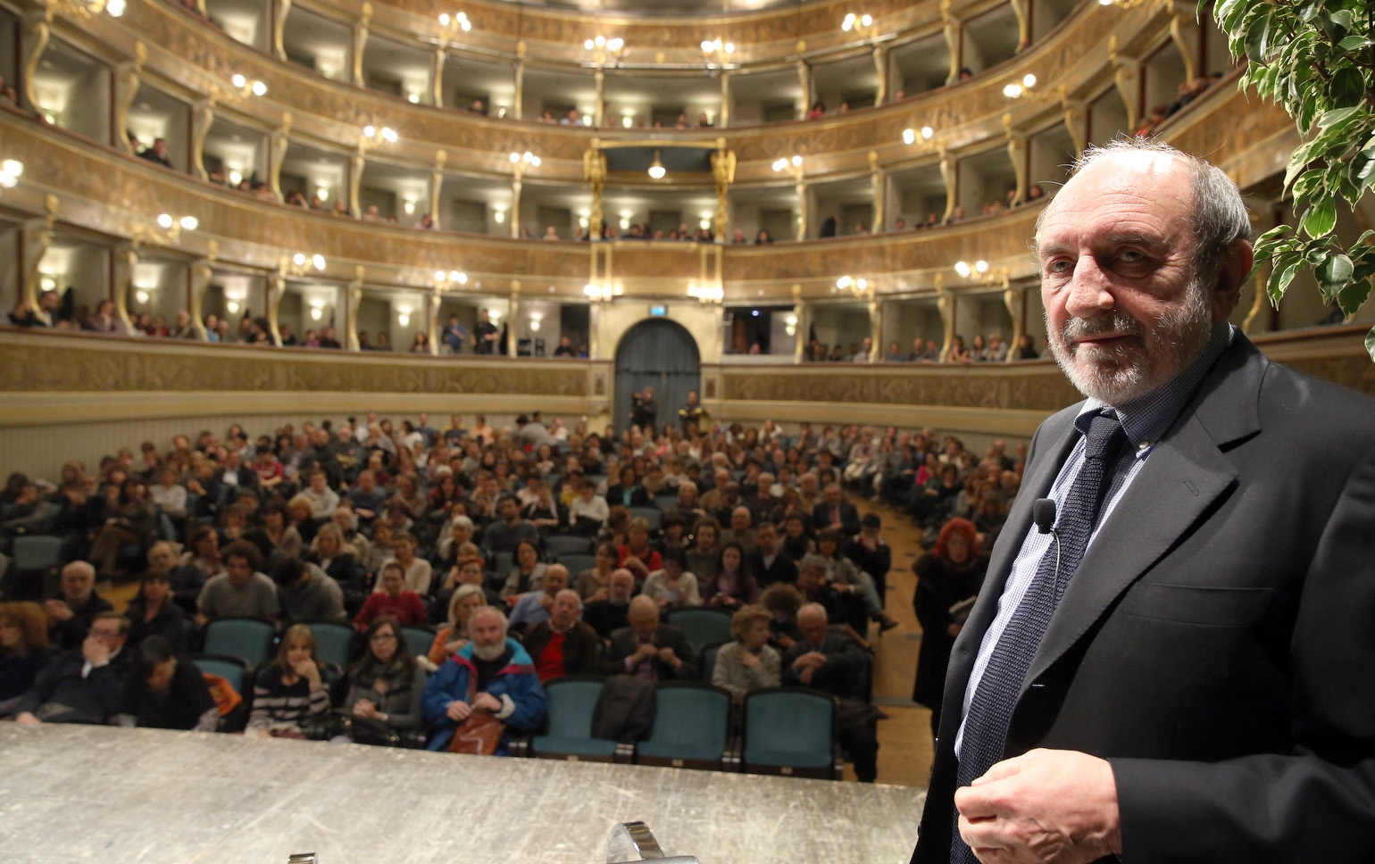 Il Sociale ospita venerdì 14 marzo 2014 il confronto-dibattito tra Umberto Galimberti, filosofo e psicanalista, e il dottor Aldo Genovese, direttore del Centro Disturbi Comportamento Alimentare dell’Azienda Sanitaria Provinciale, sulle radici più profonde del cosiddetto “disagio giovanile”. Ad ascoltarli un pubblico numeroso e attento, perlopiù di giovani, quelle “Generazioni orfane di futuro” indicate dal titolo dell’evento, organizzato dalla Fondazione Caritro.