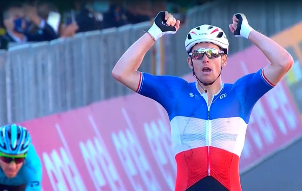 La sesta tappa non ha tempo di soste e di aperitivi. Molto mossa nei chilometri iniziali e con un finale altrettanto nervoso. La fuga, formata dal trentino Mattia Bais, Marco Frapporti, Filippo Zanna e l’australiano James Whelan, viene braccata dal gruppo per oltre 170 chilometri, poi sarà proprio Whelan ad arrendersi per ultimo. Il finale, invece, è intenso e tutte le squadre sono attentissime a guidare i propri favoriti attraverso questa perenne salita. Nessuno si muove nel tratto al 10% ai 3 km dal traguardo, mentre nella volata finale trionfa ancora Arnaud Demare! Il campione francese parte coperto dalla volata lanciata di Fulgsang e Felline, ma il piccardo vince con un distacco infinito, netto e categorico. Maglia rosa ancora salda tra le braccia di Almeida.