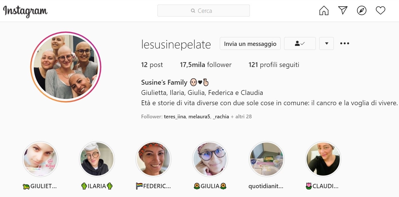 Non si aspettavano una tale esplosione di followers quando, pochi giorni fa, hanno deciso, per gioco, di condividere la loro storia sui social. Le “Susine pelate”, questo il divertente nomignolo scelto da cinque ragazze che da qualche tempo stanno combattendo contro un maledetto sarcoma, un tumore maligno del tessuto connettivo, sono diventate loro malgrado delle star di Instagram, per la capacità di raccontare una situazione drammatica in maniera leggera e solare, come il loro carattere.