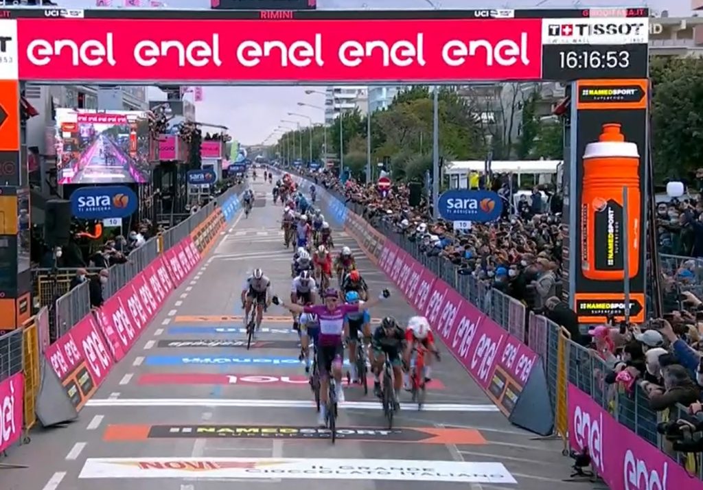 Se il buon vino non manca nelle tavole romagnole, il Giro oggi non vuole farsi mancare un bell’arrivo in volata. Undicesima tappa di pianura e legnate. Fuga che con i denti prova a resistere al rientro del gruppo e proprio in questa fase Elia Viviani viene tamponato da una moto del servizio corsa (presagio che non è per niente l’anno per il corridore veronese), fortunatamente senza troppe conseguenze. Il plotone raggiunge gli attaccanti di giornata a pochi km dal traguardo. Arrivo che risulta molto complesso e nervoso. Già a 5 km dal traguardo cominciano diversi cambi di direzione, una strettoia e l’ultima curva è a soli 600 m dalla linea del trionfo. Per la quarta volta in questo Giro d’Italia ad attraversala è ancora Arnaud Demare! Il piccardo è inarrestabile e confeziona un’altra volata sontuosa e perfetta. Maglia rosa ancora sulle spalle di Almeida, occhio alla tappa di domani con i colli di Cesenatico, che potranno creare insidie e pericoli.