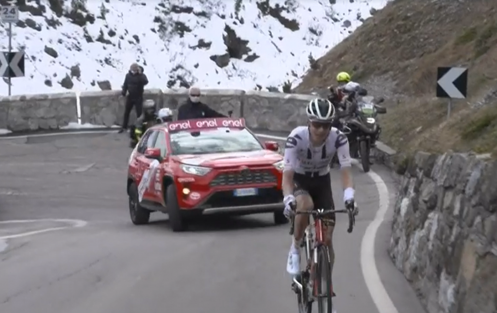 La diciottesima tappa è mortifera, praticamente un omicidio a pedali. Si parte già in salita con Campo Carlo Magno, in seguito si percorre passo Castrin, inedito passo della Val d’Ultimo, per infine gettarsi ai piedi dello Stelvio. Montagna che diventa un Memento Mori per chiunque. Salita micidiale e lunga 25 chilometri. La corsa esplode proprio sul serpente più temuto tra i ciclisti. Almeida precipita, naufraga, è straziato dal ritmo incessante, prima della coppia della Sunweb (Kelderman e Hindley), e in seguito dalla coppia della Ineos Granadier (Dennis e Geoghegan Hart). Lo spettacolo tanto atteso si svolge proprio sulla Cima Coppi di questo Giro d’Italia. Kelderman non regge il ritmo della Ineos e si deve staccare. Hindley, invece, è di altro avviso e si appiccica alla ruota dell’australiano e dell’inglese. La discesa verso Bormio è una sfida nella sfida. Il tempo dei distacchi sembra cristallizzarsi, tutti sono a rotta di collo prima di affrontare il gran finale. Perché non bastava l’ascesa infernale dello Stelvio: i corridori una volta sulla strada per Bormio, rivolgono le ruote di nuovo all’insù verso i laghi di Cancano. Sulla salita finale comincia la sfida alla distanza tra Hart e Kelderman. Dennis dopo aver ottimamente trainato il suo compagno di squadra si lascia sfilare. Anche Kelderman però sembra alzare bandiera bianca nell’inseguimento di Geoghegan Hart e Hindley, e viene superato a doppia velocità dal gruppetto inseguitore formato da Fuglsang e Pello Bilbao. Proprio quest’ultimo abbandona il danese nei chilometri finali, per provare a raggiungere la coppia di testa. Ogni sforzo è inutile: a trionfare ai laghi di Cancano è Jai Hindley, che supera il britannico della Ineos Granadier sul traguardo. Kelderman, invece, difende ottimamente la posizione e ottiene la maglia rosa per una manciata di secondi.