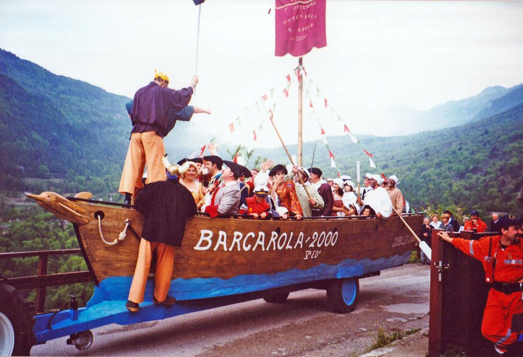 Si tratta della “Barcarola”, e con essa si vuole ricordare la forte emigrazione di tanti “cimoneri” in America, verso la fine del 1800. Fu l’allora parroco don Baffetti, marchigiano di Osimo, che istruì la gente di montagna nella costruzione della barca sulla quale solitamente, accanto alle autorità, marinai e servitori salgono anche altre persone della comunità e bambini, tutti uniti nel ricordo tramutato in festa.