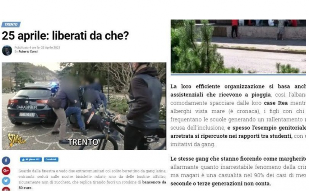 È molto difficile contenere lo sdegno per quanto apparso sul quotidiano online La voce del Trentino, proprio il giorno in cui si festeggia la liberazione dalla dittatura.