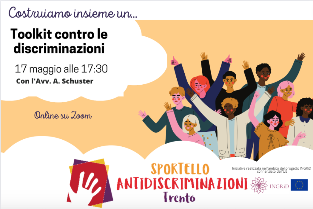 Martedì 17 maggio alle 17.30, sulla piattaforma Zoom, parte il primo di tre incontri pensati dallo Sportello Antidiscriminazioni di Trento per costruire con l’aiuto di esperti delle professioni legali, un ‘toolkit’ di strategie e dispositivi di difesa nei confronti di aggressioni e micro-aggressioni di natura discriminatoria, a cui ricorrere nel frangente stesso in cui i fatti si verificano.