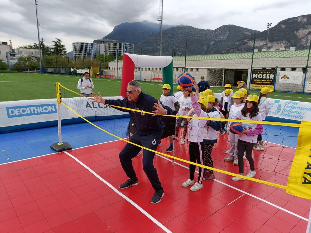 All’interno del parco sono stati montati dodici campi nei quali i bambini hanno giocato sotto l’attenta supervisione dei 20 smart coach messi a disposizione dalla Fipav Trentino.