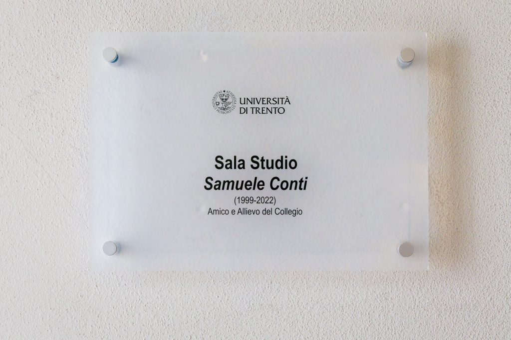 Samuele risiedeva proprio al Collegio Clesio. Aveva 22 anni, era originario di Povegliano Veronese ed era studente del corso di laurea magistrale in Artificial Intelligence System. “Un giovane generoso e impegnato nel volontariato”, lo ha ricordato la prorettrice vicaria Paola Iamiceli in occasione dell’inaugurazione della sala studio, mercoledì 14 giugno. “Un allievo speciale”, lo ha definito Jorge Jovicich, delegato del rettore per il Collegio Clesio. “Questa era la sua casa e questo spazio ora sarà un luogo da vivere insieme”, ha detto Paolo Carta, delegato del rettore per il Collegio Clesio quando Conti era ospite.
