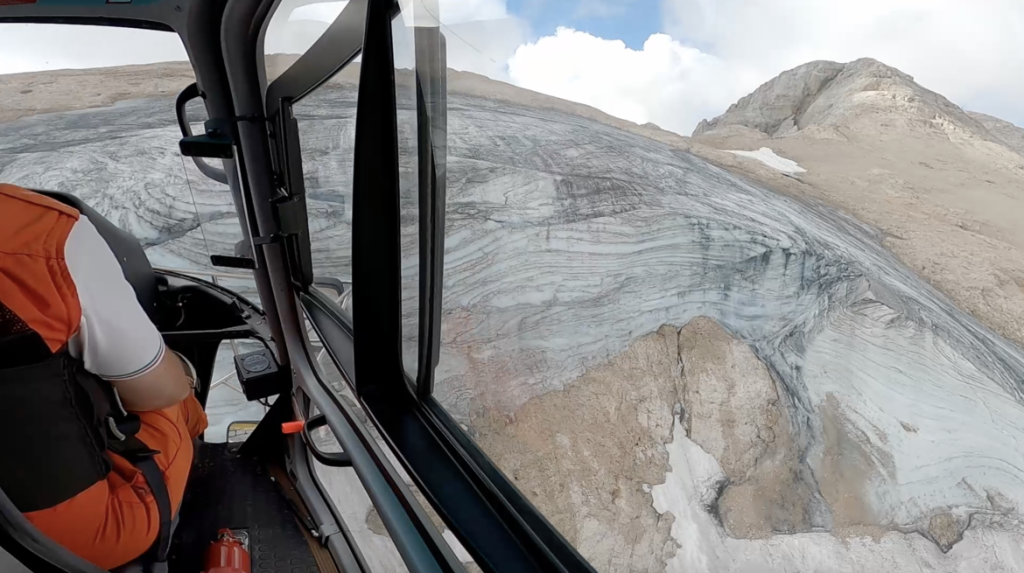 Si è svolto nella giornata di venerdì 25 agosto un nuovo sopralluogo in quota in Marmolada, nell’ambito dell’iniziativa di monitoraggio che punta a stabilire la presenza di acqua liquida all’interno del ghiacciaio.