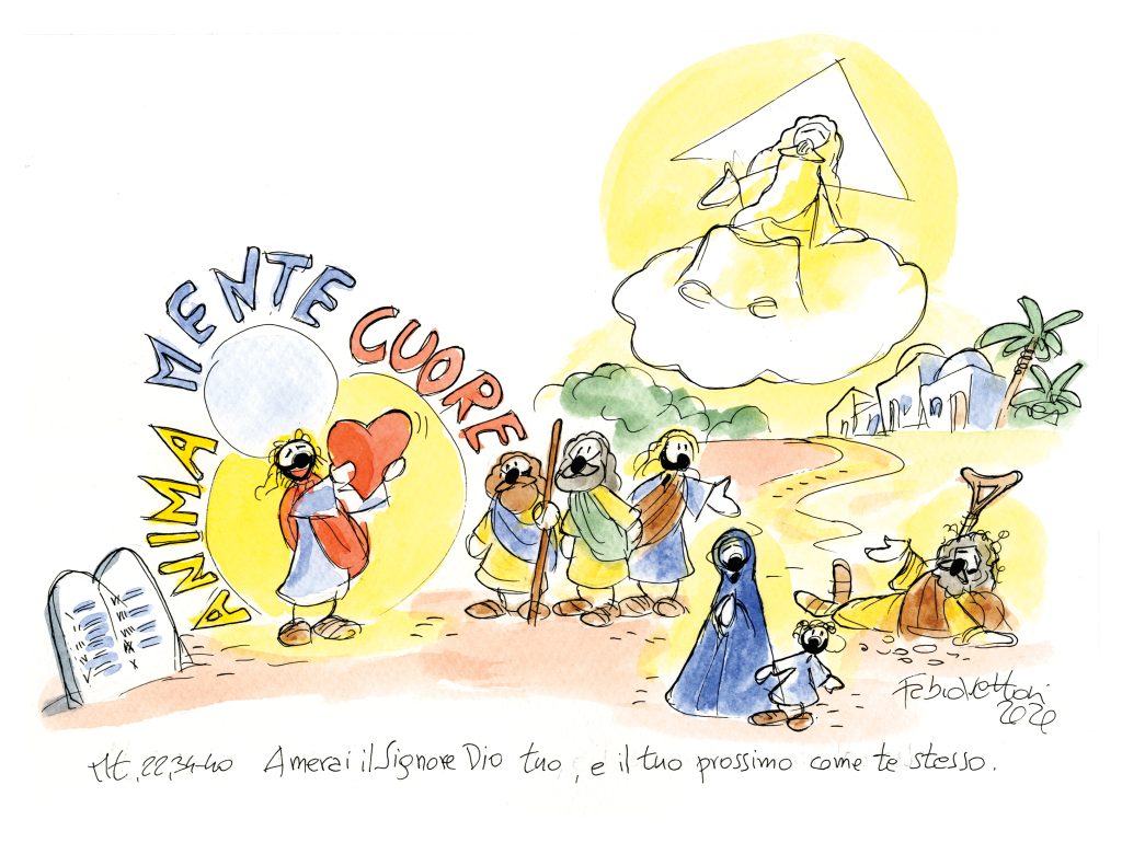 «Amerai il Signore tuo Dio con tutto il tuo cuore, con tutta la tua anima e con tutta la tua mente. Questo è il grande e primo comandamento. Il secondo poi è simile a quello: Amerai il tuo prossimo come te stesso». Mt 22,37-39