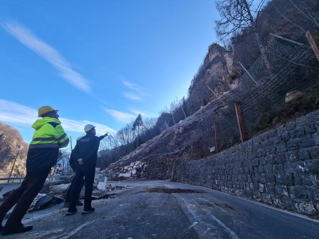 Un’arteria che è al momento chiusa in località Busatti per la nuova frana avvenuta nella notte fra domenica 11 e lunedì 12 febbraio, dopo l’episodio del 4 novembre che aveva reso necessario un primo intervento di messa in sicurezza. “Occorre demolire un masso di circa 380 metri cubi e poi intervenire nella zona interessata, un’attività che richiederà circa una decina di giorni – così il presidente della Provincia Maurizio Fugatti nel sopralluogo compiuto oggi sul posto -. Fatto questo primo passo, potremo capire meglio i tempi che serviranno per mettere in sicurezza il versante, riutilizzando o meno – questo lo accerteranno gli approfondimenti tecnici – parte dei lavori effettuati per le barriere di protezione realizzate per la frana precedente e che sono state danneggiate dal nuovo crollo. Le strutture tecniche della Provincia e le imprese coinvolte sono impegnate per la riapertura il prima possibile, considerando però le necessarie esigenze di sicurezza e naturalmente tenendo presente l’importanza che questo collegamento ha per gli Altipiani cimbri, specie con la stagione invernale ancora in corso”.