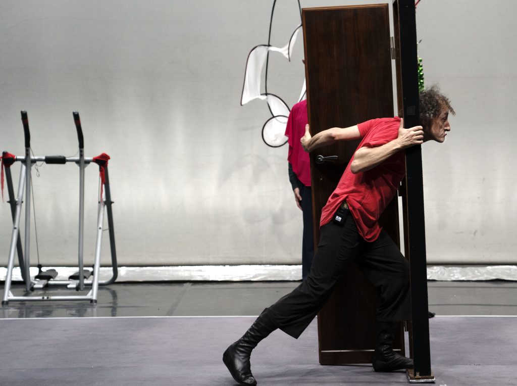 Il giorno successivo, venerdì 23 febbraio, andrà invece in scena il loro ultimo spettacolo teatrale dal titolo Hybris, un lavoro ontologico-umoristico, delirante-realista, psicanalitico-lunare e lunatico. Rinchiuso in un rettangolo dai lati solo disegnati in terra e quindi sempre valicabili, suggerisce un ambiente frigorifero per la conservazione della specie, dotato di qualche confort per i periodi di lunga reclusione, aperto agli infiniti dell’abiezione e della risata, del paradosso e dell’accelerazione stratosferica e incontenibile, del tormentone e dello sguardo antropologico.