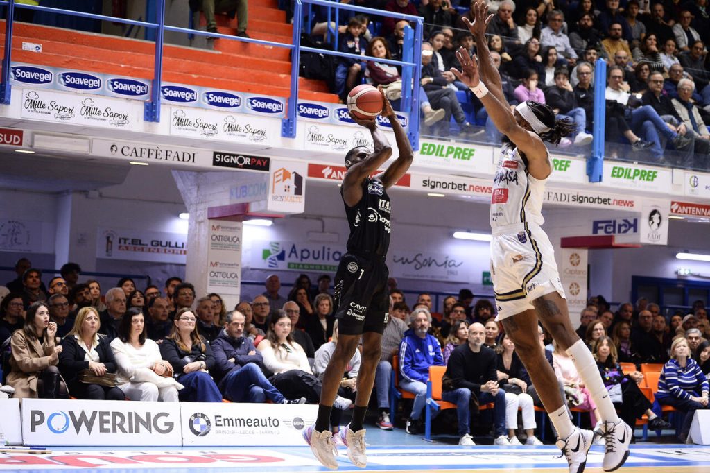 Brusco stop nella corsa ai playoff per l’Aquila Basket, sconfitta per 89 a 82 nella sfida contro il fanalino di coda Brindisi, che rilancia le sue ambizioni di salvezza giocando una partita di grande carattere e concretizzando le proprie occasioni in un ultimo quarto particolarmente complicato per Forray e compagni. L’Aquila Basket è scesa in campo senza Andrejs Grazulis, fermato poco prima dell’inizio del match da un problema al ginocchio che sarà valutato al rientro della squadra a Trento; tra le note liete di serata, i 17 punti di un sempre più convincente Matt Mooney e soprattutto il massimo in carriera da 16 punti del classe 2004 Saliou Niang (8/11 dal campo, 5 rimbalzi e 2 recuperi in 20’ di gioco).