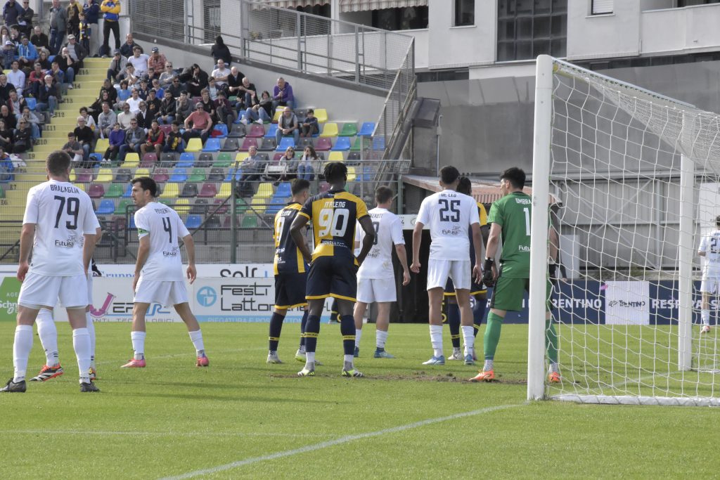 Triplo cambio Trento al 15º della ripresa: fuori Spalluto, Ferri e Pasquato dentro Terrani, Frosinini e Anastasia. Tra le fila del Renate si rivede al Briamasco Bocalon, fischiatissimo. Il Trento cala comprensibilmente il ritmo, visti anche i risultati sugli altri campi, al momento favorevoli, ma al minuto 28 porterebbe passare: percussione di Anastasia, entrato subito in gara, palla che resta vagante in mezzo all’area, Frosinini che tira a botta sicura, ma il giovane portiere Ombra – classe 2002 – spezza l’urlo del Briamasco con una super parata.