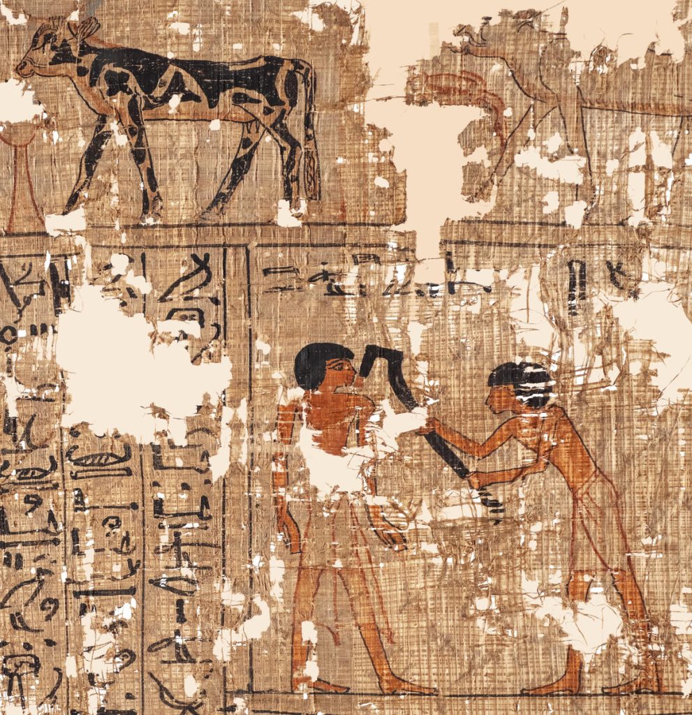 Databile al regno di Hatshepsut/Thutmosis III (1479-1425 a.C.) e rinvenuto a Saqqara, il papiro è stato realizzato per l’ammiraglio di flotta e capo dei rematori del tempio di Ptah situato a Menfi. Il testo geroglifico, così come la straordinaria figurazione, permette di riconoscerlo come scritto funerario e di annoverarlo tra i primi esemplari papiracei conosciuti del ‘Libro dei morti’, in antico egiziano “Formule per uscire di giorno”, una composizione di testi di carattere magico-funerario per guidare ed aiutare il defunto nel suo percorso nell’aldilà. L’uso di deporre all’interno delle sepolture rotoli di papiro riportanti testi composti da formule del Libro dei Morti si attesta a partire dalla XVIII dinastia (1539-1292 a.C.) a Tebe dove si colloca anche l’origine di questa composizione funeraria – organizzata in testi a colonne con l’inserzione di vignette – abitudine che perdura almeno fino all’epoca tolemaica-romana. A fine anno sarà nuovamente visitabile la collezione egizia al Castello del Buonconsiglio.