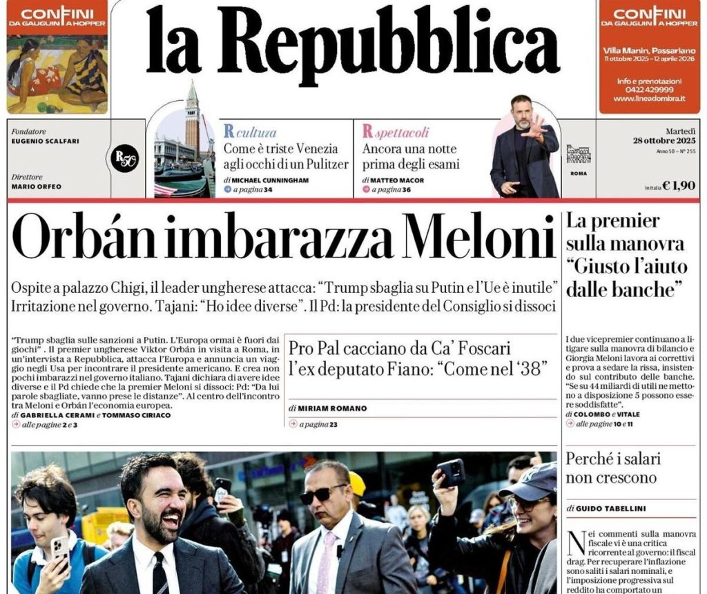 Contemporaneamente è un punto debole per il governo a causa delle divisioni interne alla maggioranza, come ha plasticamente mostrato la visita a Roma del premier ungherese Orban. Le sparate del leader di Budapest contro l’Unione Europea, a suo giudizio incapace di fare alcunché, nonché in favore di Putin e della sua politica al punto di millantare che andrà lui da Trump per convincerlo a togliere le sanzioni alla Russia, per non dire del suo entusiasmo per i governi di destra in Cechia e Slovacchia, non rinforzano certo il posizionamento della nostra premier e del nostro ministro degli Esteri.