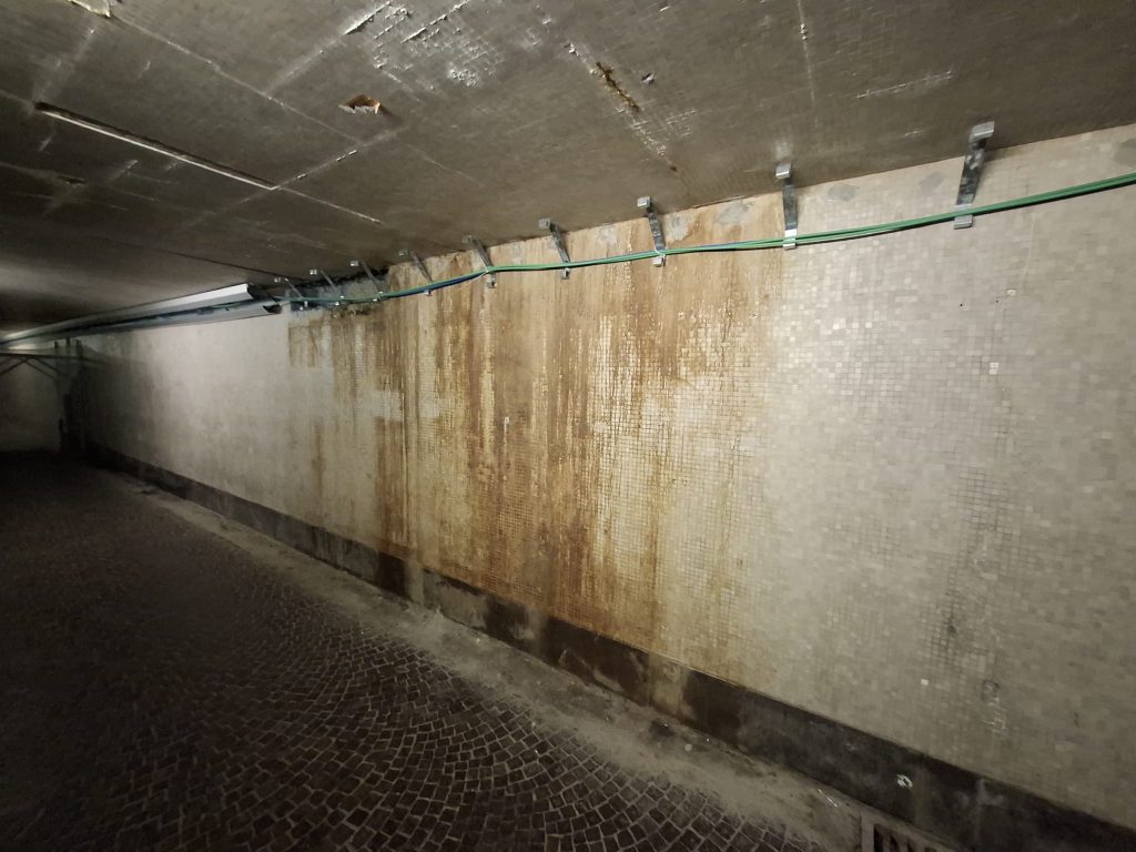 Per via dei lavori di restauro del mosaico monocromatico color panna che decora il sottopasso di via Dogana, a Trento, il transito nel passaggio verrà chiuso dal 5 al 10 gennaio solo di notte, nella consueta fascia oraria dalle 22 alle 6 del mattino, per consentire poi il passaggio pedonale durante il giorno.