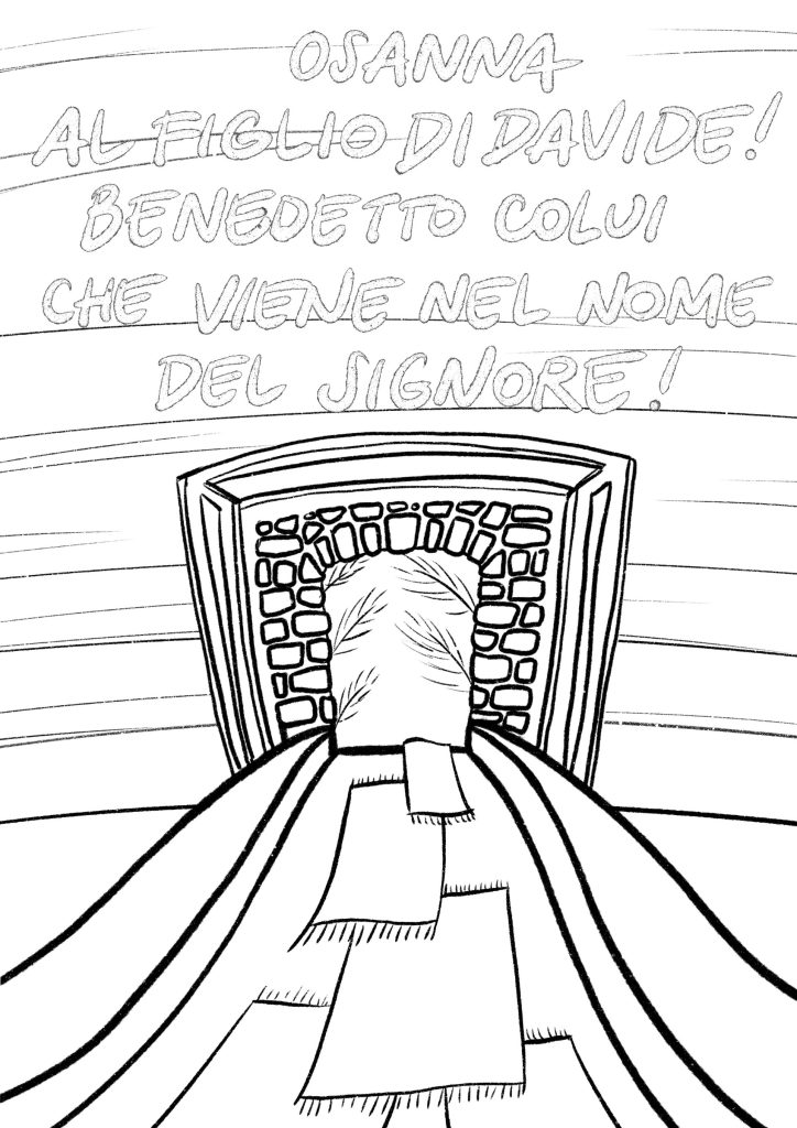 A Gerusalemme c’è fermento: hanno detto che sta per arrivare Gesù. Bisogna preparargli la strada, ma ci sono pozzanghere, fango, polvere e buche. La gente inizia a tagliare rami degli alberi e metterli a terra. Qualcuno corre a prendere una stuoia, il tappeto che ha in casa, un telo. Altri, non avendo nulla, mettono a terra i propri mantelli, senza...
