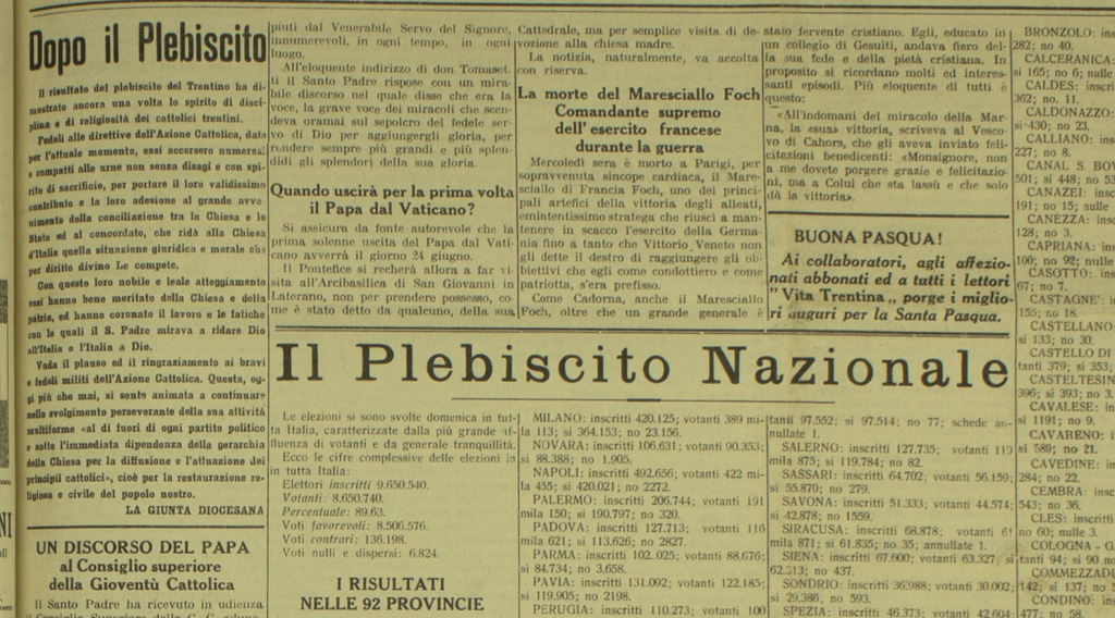 Attraverso le pagine di Vita Trentina il messaggio di pace della Pasqua raggiunge anche i militari trentini: nell’apposita rubrica “Lettere dal fronte” si leggono i loro ringraziamenti, impaginati peraltro a poca distanza dai drammatici aggiornamenti raccolti sotto il titolo: “Bollettini di guerra”.