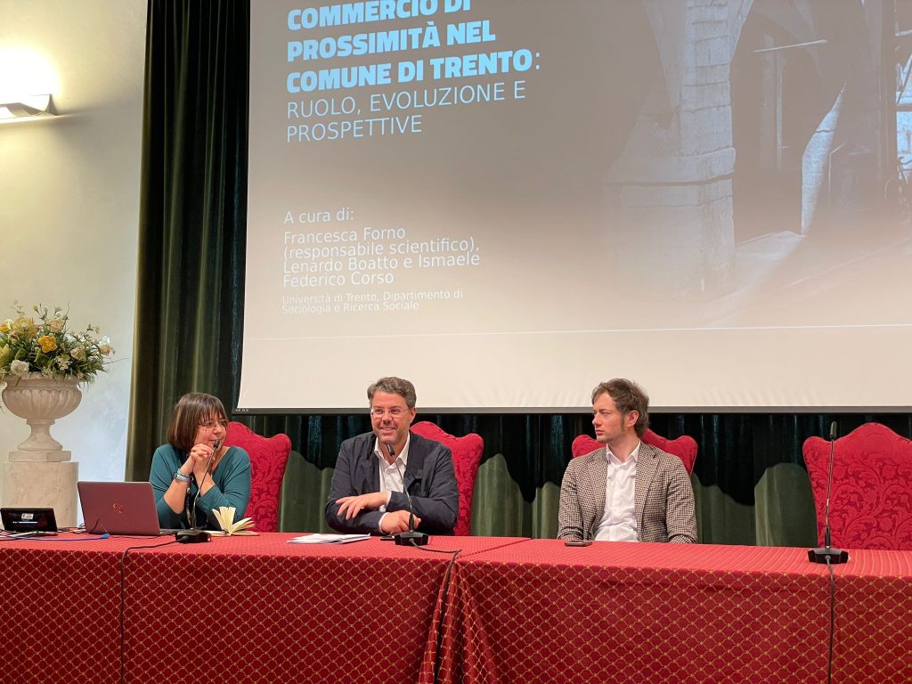 Dalle 15.30 alle 16.30 ci sarà la presentazione dei risultati della ricerca “Spazi” a cura di Francesca Forno (responsabile scientifico), Leonardo Boatto, Ismaele Corso, Carmen Papapicco. Verranno illustrati i dati raccolti sul commercio di prossimità a Trento nell’ambito della ricerca sostenuta dal Protocollo UniCittà, avviando un confronto con le rilevazioni sugli spazi commerciali non utilizzati nel Comune di Rovereto.