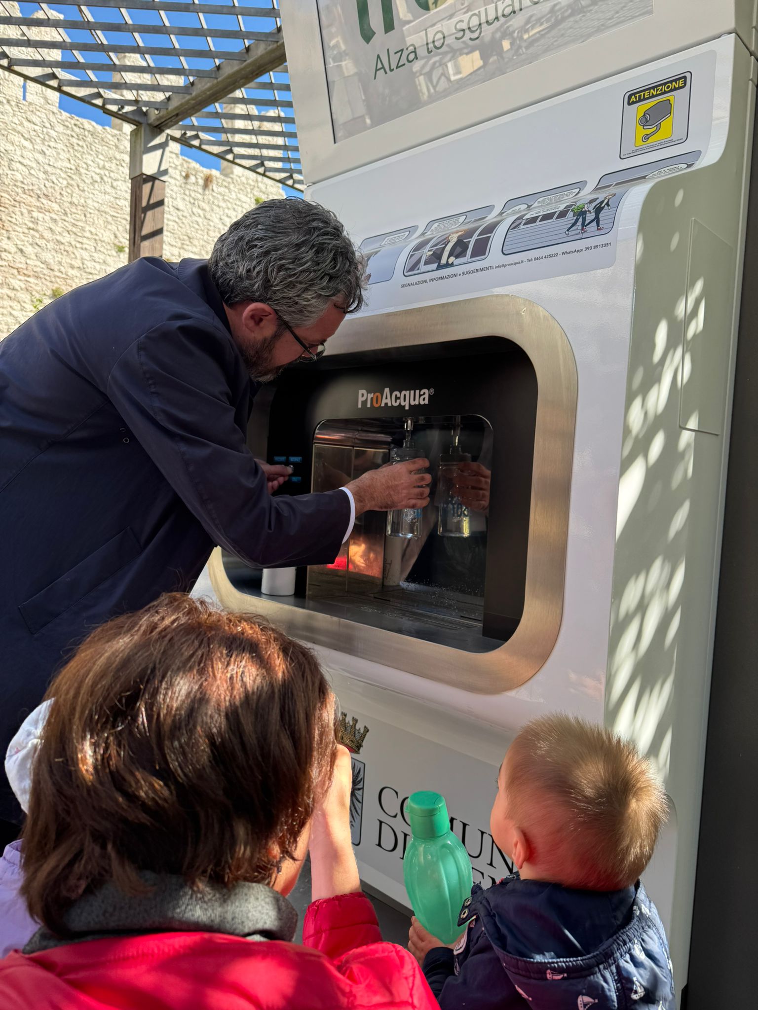 Il sindaco Franco Ianeselli, dopo aver aiutato i bambini a riempire le loro borracce, ha ricordato che “la Casa dell’acqua nasce su proposta del consigliere comunale Pino Urbani ed è stata poi approvata dal Consiglio Comunale”. Ha poi proseguito: “Abbiamo deciso di posizionare il distributore proprio in piazza Fiera perché qui, oltre a numerosi passanti, ci sono anche tante scuole e studenti. Come vedete non ci si fa mancare niente: c’è sia naturale che frizzante. È una piccola opera ma significativa, speriamo che sarà apprezzata da un grande numero di cittadini”.