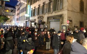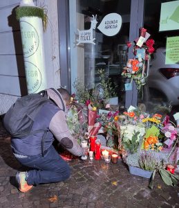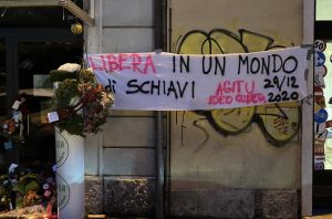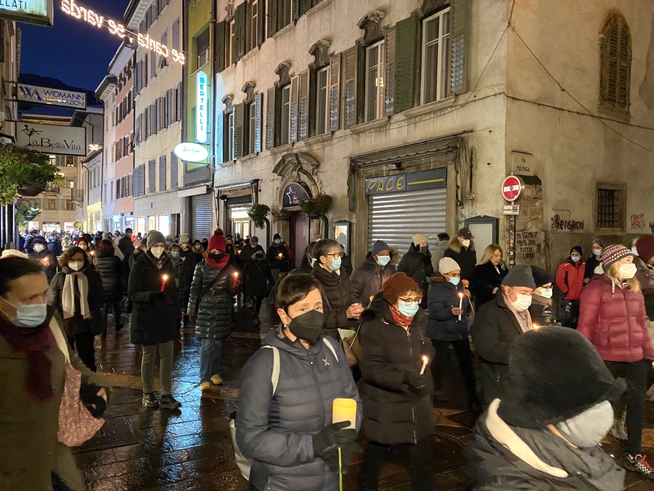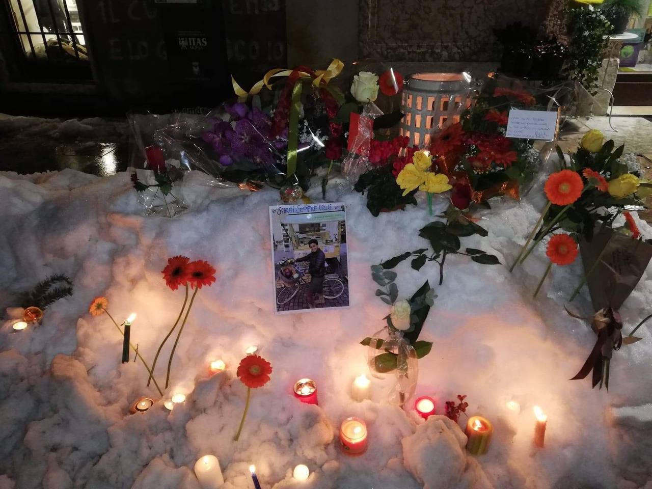 La camminata ha ragginuto piazza Venezia dove Agitu gestiva la sua Bottega della Capra Felice, dove i numerosissimi partecipanti, illuminati dalla luce di una candela, hanno potuto lasciare un fiore, un simbolo o un ricordo davanti al negozio.