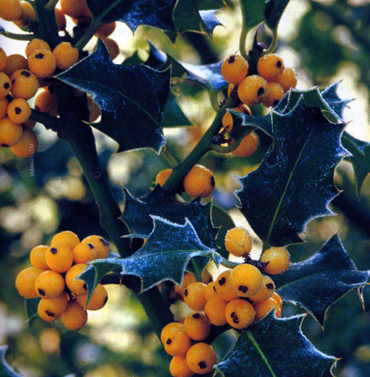 AGRIFOGLIO GIALLO. L’agrifoglio (Ilex acquifolium) è tra le piante più regalate nel periodo delle feste di fine anno. La sua bellezza è legata ai rametti sui quali spiccano le drupe rosso fuoco tra il verde lucido delle foglie spinose. In natura è una pianta che cresce spontanea ai margini dei boschi di latifoglie dove forma dense macchie. Pochi invece sanno che si tratta di un arbusto appartenente al gruppo delle piante dette dioiche, vale a dire di quelle che portano fiori maschili e femminili su piante separate. Quindi le bacche che al loro interno contengono i semi necessari a moltiplicare la specie, sono portati solo dalle piante femminili. Ecco perché al fine di avere piante con le bacche bisogna piantare in giardino almeno due piante di sessi diversi. Il colore classico delle bacche è rigorosamente rosso fuoco, ma i vivaisti da alcuni anni hanno selezionato una varietà specifica (bacciflava) che produce bacche di colore giallo carico.
