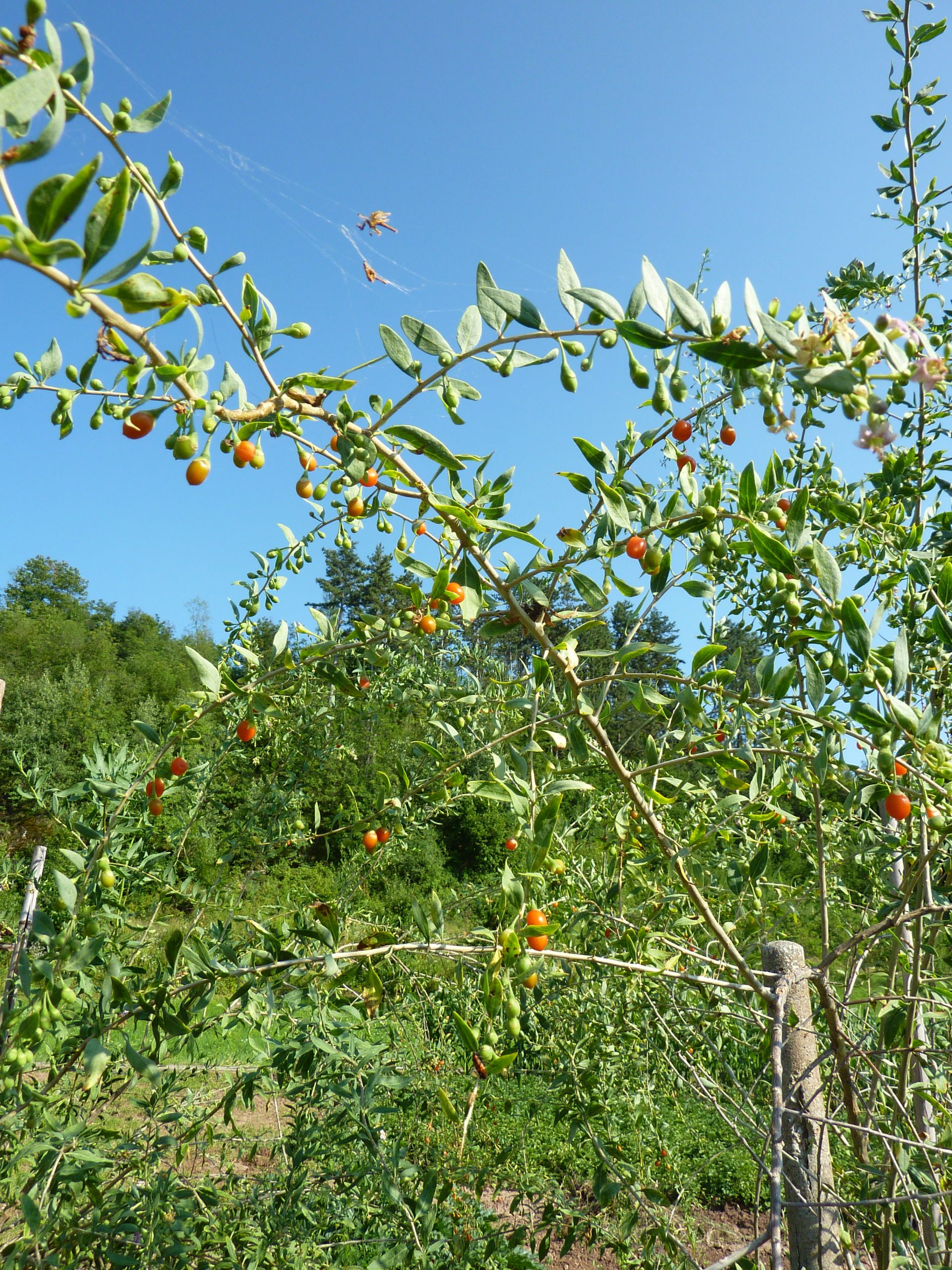 GOGJ IN GIARDINO. Un lettore di Trento ci scrive chiedendo lumi su una curiosa pianta vista in un orto di paese. Dalla descrizione sommaria abbiamo appurato che si tratta della pianta del Goji, coltivata da migliaia di anni nelle zone dell’Himalaya, in Mongolia, nel Tibet e in Cina. E’ pianta perenne a foglia caduca, portamento cespuglioso, molto rustica (resiste al freddo e alla siccità). Fiorisce da giugno a settembre e produce bacche rosse che si possono consumare sia fresche che essiccate o trasformate in concentrato. IL Goji da frutti già al secondo ano di impianto. In Cina produce fino a 80 quintali ettaro di bacche. Si coltiva ad alberello o a cespuglio. Con la potatura si eliminano i succhioni alla base e si accorciano i rami troppo lunghi. La pianta è sensibile a funghi, insetti ed acari, ma finora da noi è coltivata come ornamentale. Le bacche sono molto apprezzate dagli uccelli e le foglie dalle lumache.