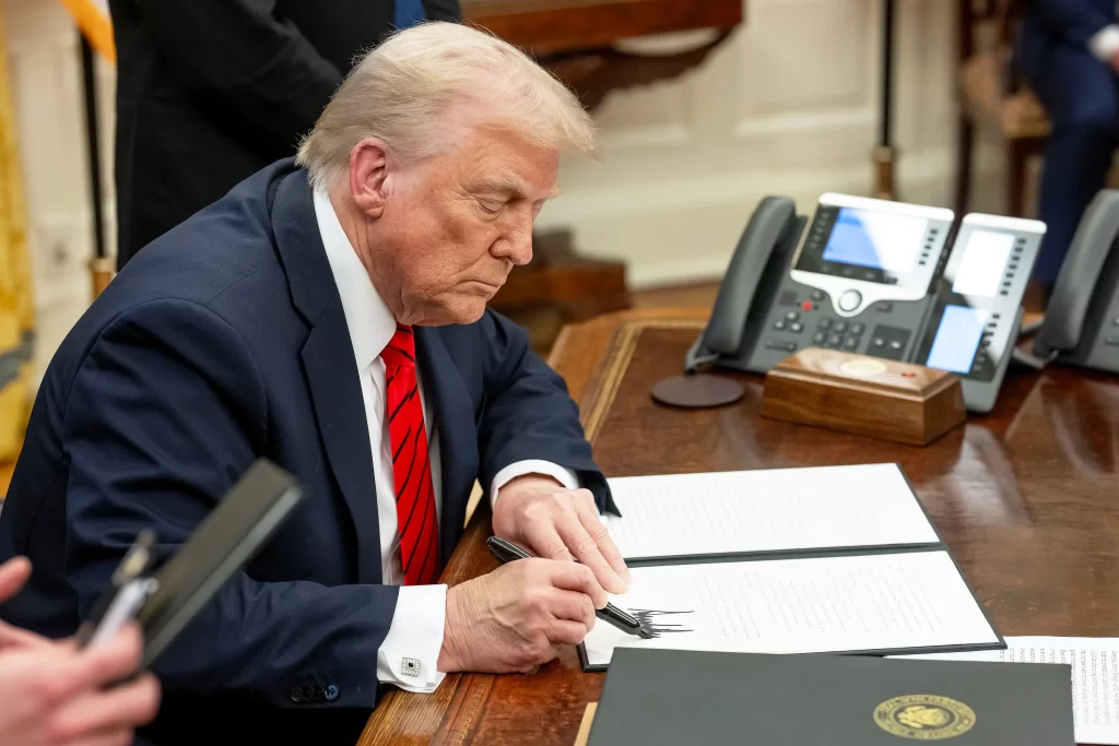 Il presidente Trump firma ordini esecutivi nell’Ufficio Ovale. L’accesso al mercato americano, afferma la Casa Bianca, è un privilegio, non un diritto © foto www.whitehouse.gov