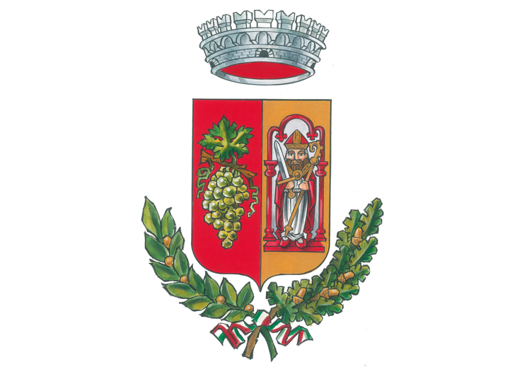 Lo stemma era distinto. Oggi la metà destra reca in campo rosso un grappolo dorato con foglia verde di uva. Sulla sinistra in campo d’oro è raffigurato S. Biagio vescovo e martire armeno racchiuso in una pala d’argento bordata di rosso. Il vescovo appare con la spada e il pastorale. Gli ornamenti esteriori sono di Comune con fronde di quercia e alloro legate con nodo tricolore.