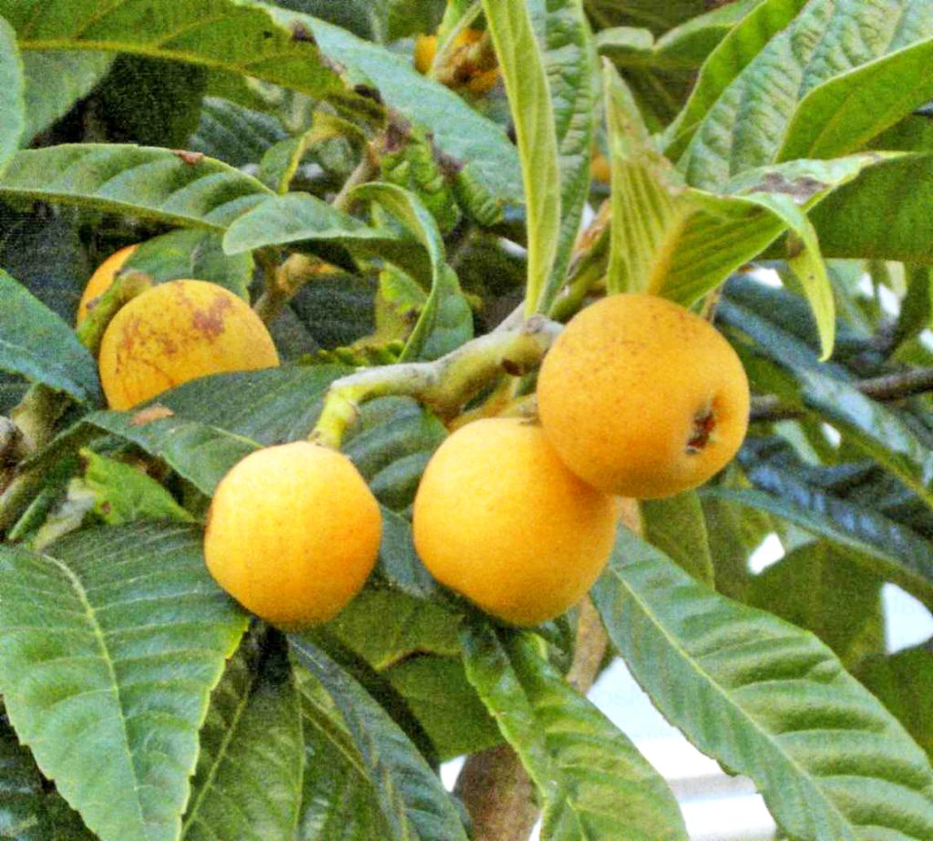 Le nespole giapponesi da noi maturano a inizio giugno. Sono frutticini ovali con la buccia di colore tra il giallo pallido e l’arancione scuro. La loro polpa è fondente, dolce e piacevolmente acidula. All’interno del frutto si trovano da uno a cinque grossi semi. Il nespolo giapponese (Eryobotrya japonica) è molto diffuso in Giappone. Non ama suoli umidi. Va irrigato solamente nel primo anno dopo il suo impianto e concimato in autunno con letame maturo o compost. La potatura si limita all’asportazione dei rami secchi o lesionati (soffre molto le nevicate abbondanti, dalle quali va subito liberato durante la nevicata). La pianta non viene attaccata da parassita alcuno.