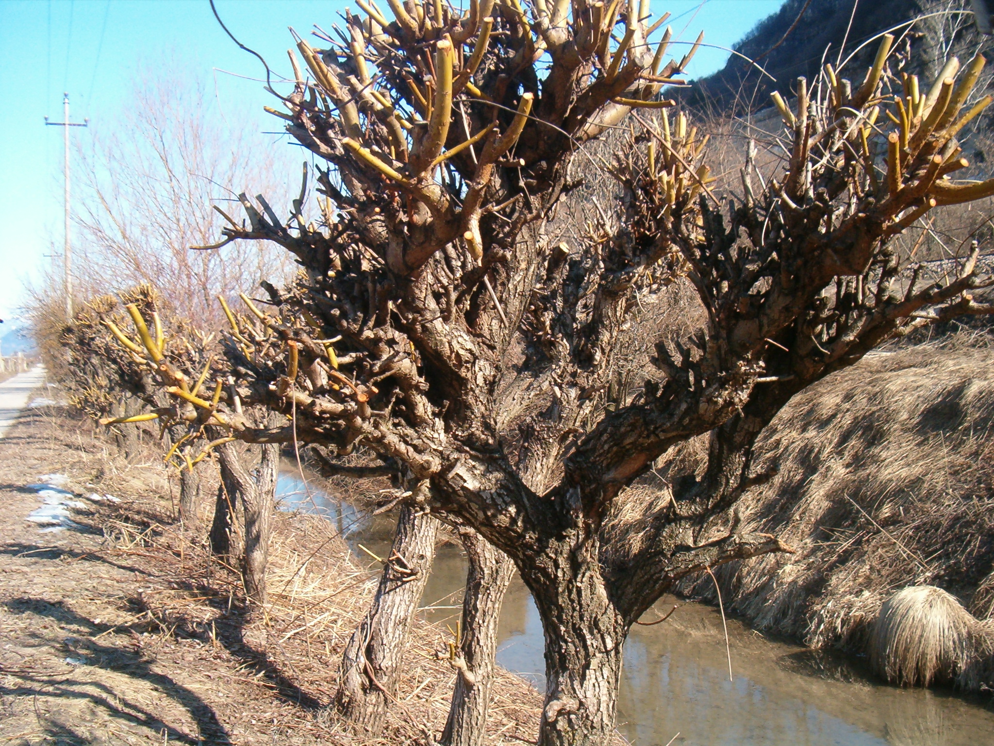 POTATURA DEL SALICE. Nonostante sia una pianta in via di pressoché totale eliminazione dalle campagne, il salice da vimini occupa ancora spazi nelle zone marginali, di mezza montagna, in aree prative molto umide. Tante piante non vengono però nemmeno potate, stante oramai l’imperare dei legacci di materiale vario. Alcuni appassionati ne coltivano qualche esemplare, magari molto vecchio, per farne materiale da legatura per la vigna di famiglia. In questo caso è bene provvedere alla potatura annuale. Il sistema classico è quello a capitozza, che prevede il taglio drastico di tutta la parte vecchia e di tutte le produzioni dell’anno, vale a dire i vimini veri e propri.